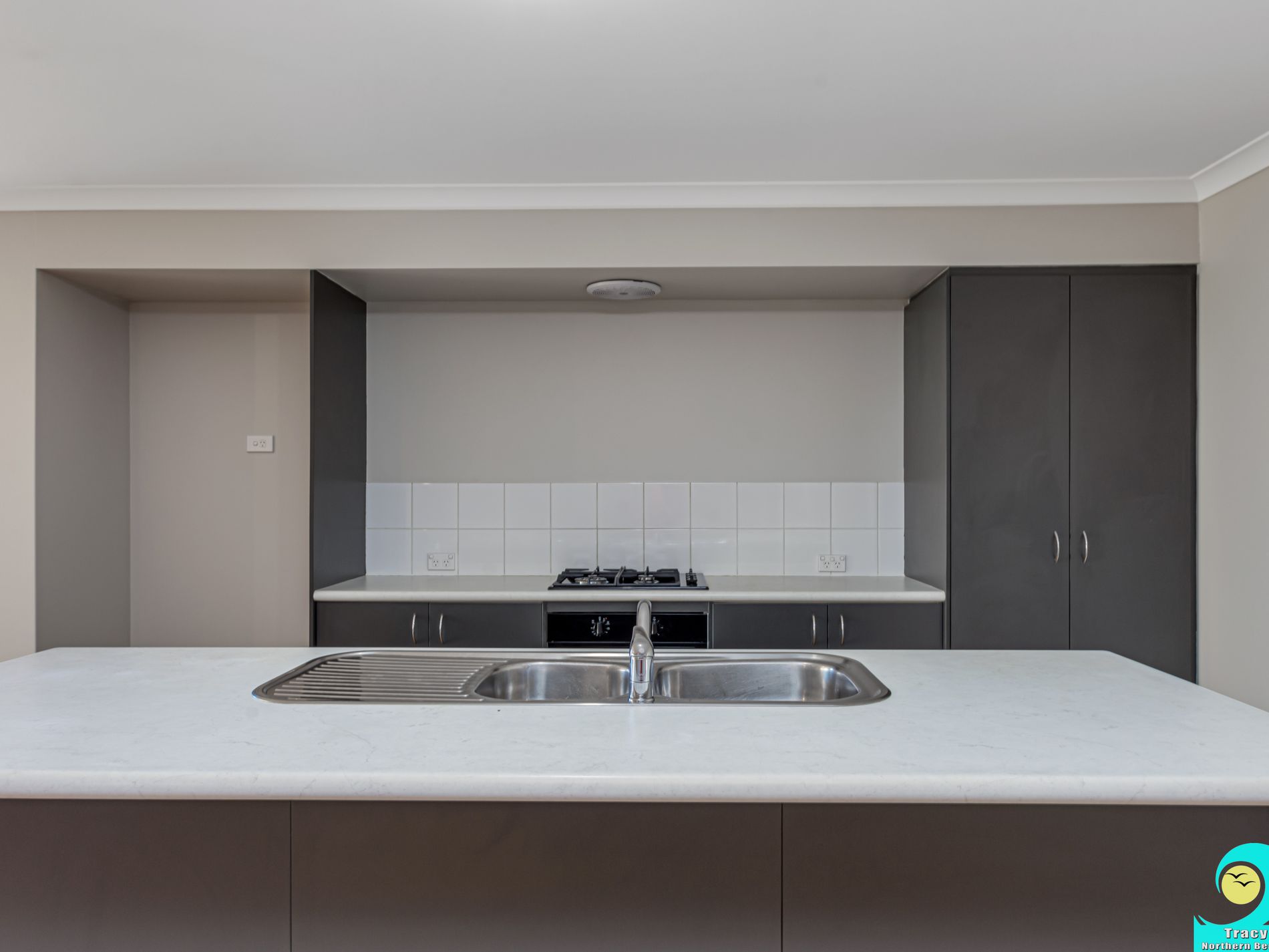 • Kitchen with island/breakfast bar, dishwasher recess, 60cm gas cooktop, under-bench oven and double door pantry.