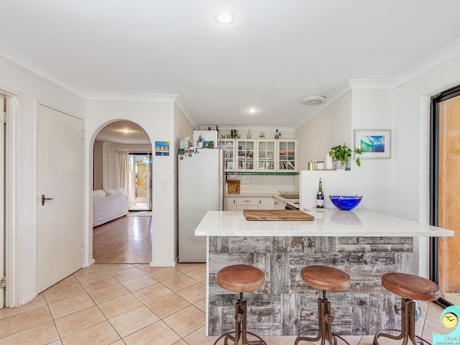 * Renovated kitchen in that lovely beachy style with overhead cupboards, plenty of bench-space and breakfast bar plus freestanding 60cm electric stove