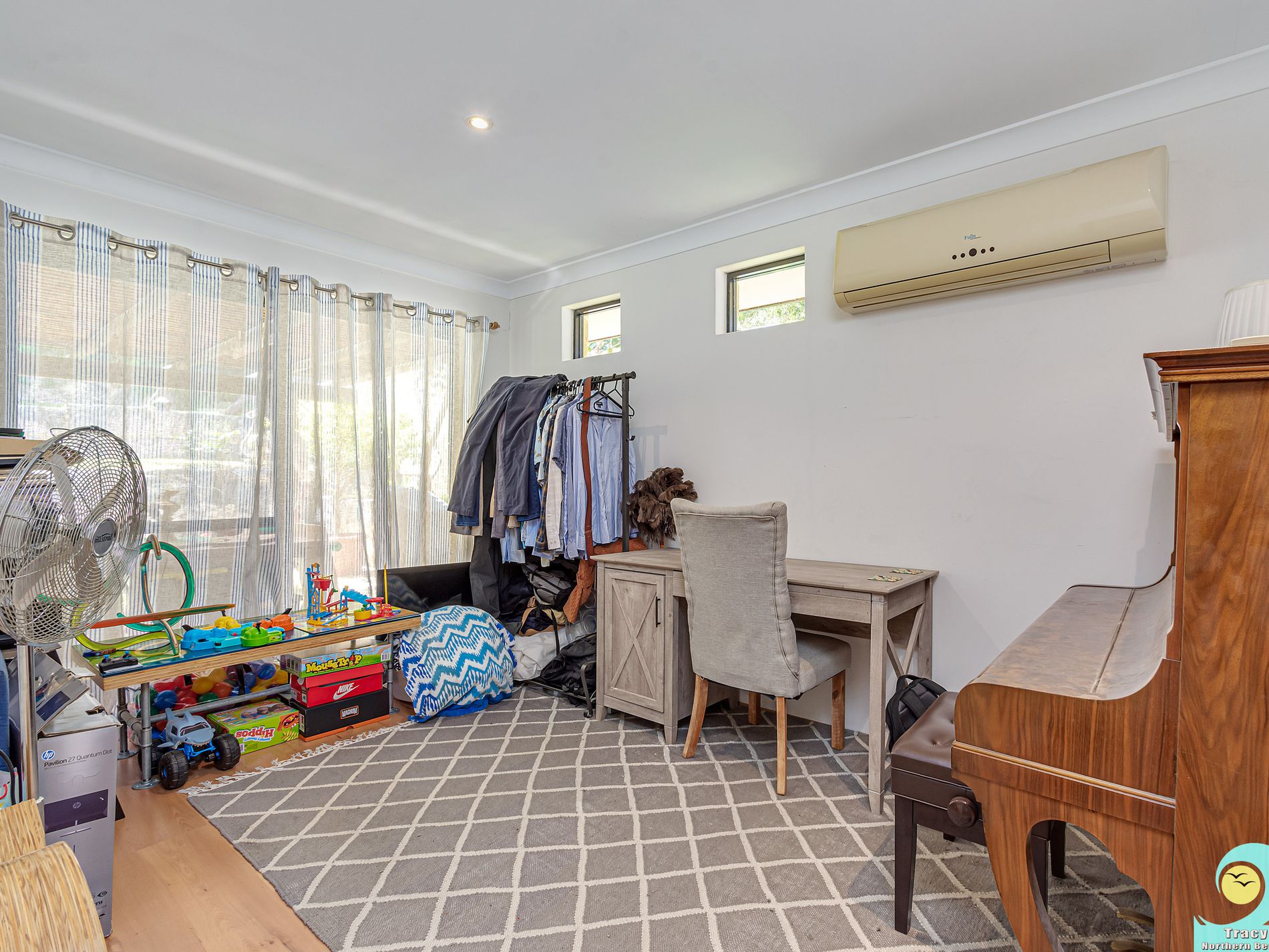 * Study or bedroom 3 with large split system AC that flows throughout the whole house