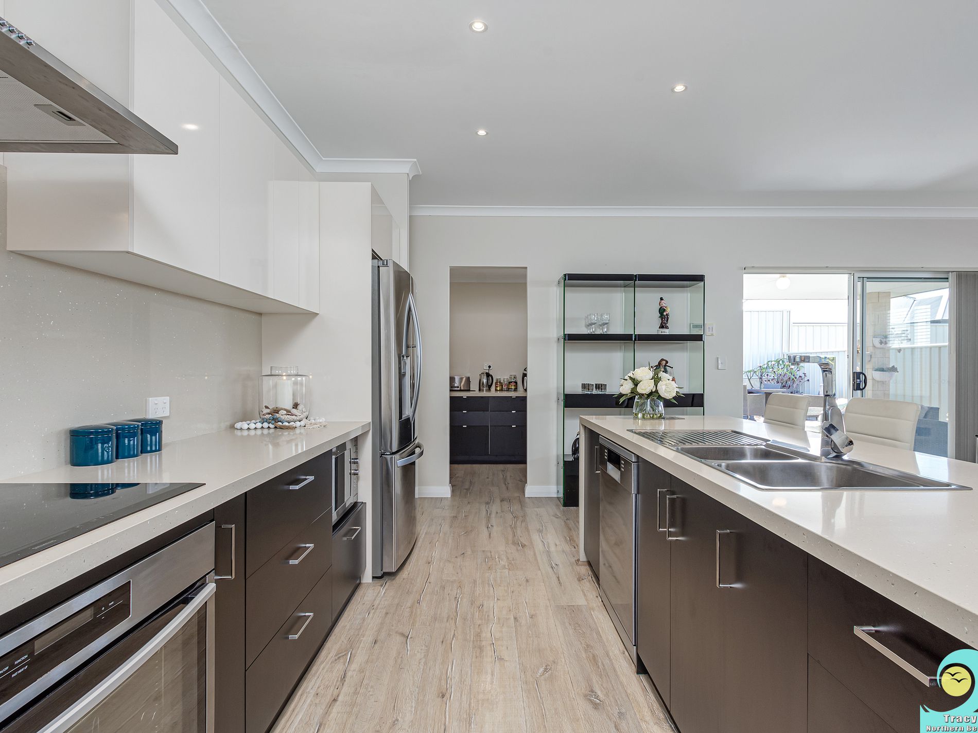 • Kitchen with 40ml stone benchtops with waterfall ends, huge walk-in-pantry, scullery, 90cm quality appliances, dishwasher and double fridge recess.