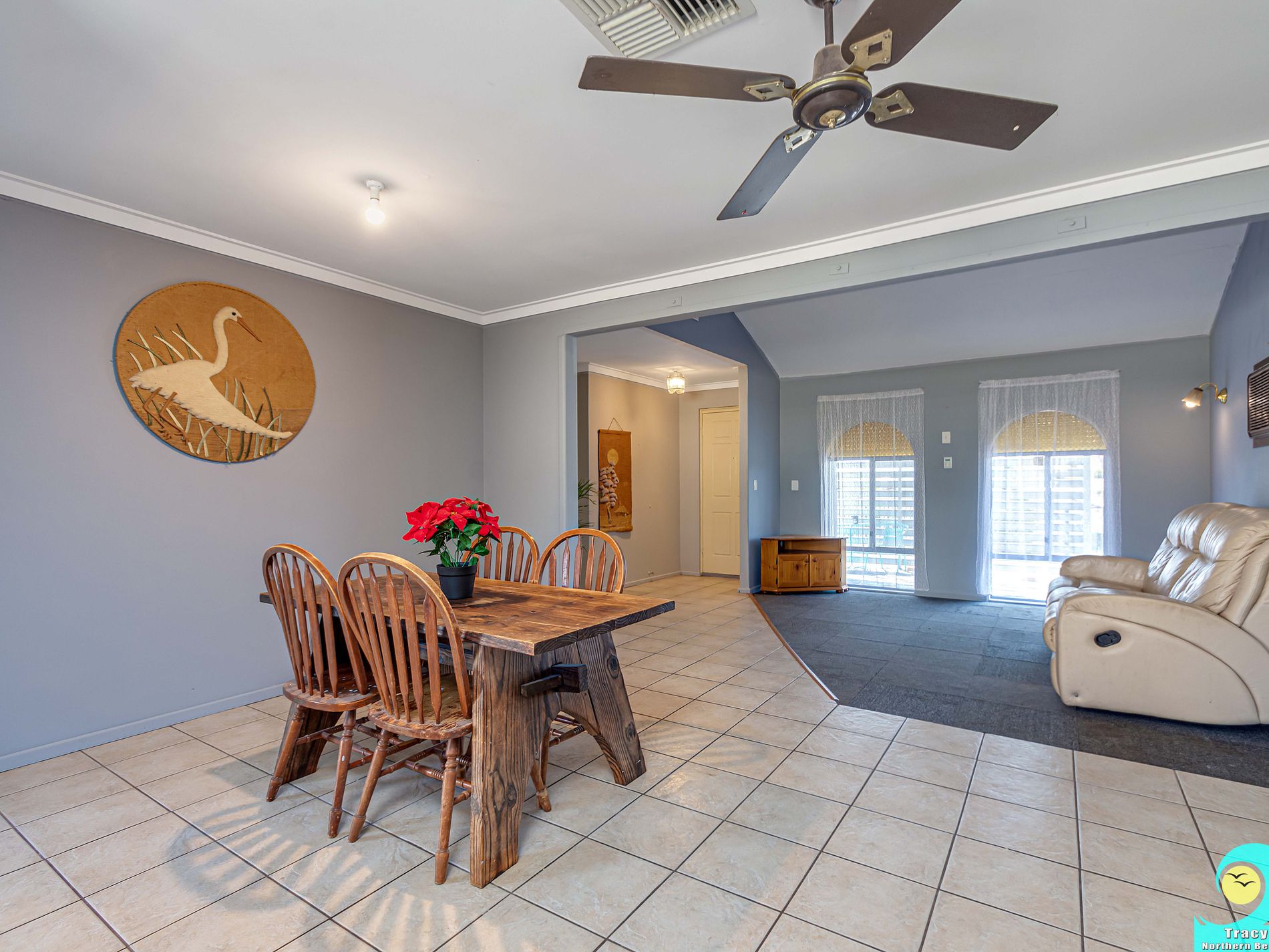 • Tiles to kitchen/dining and hallway, wood-look flooring to all bedrooms and concrete floor with sealed vinyl tiles in laundry and bathroom.