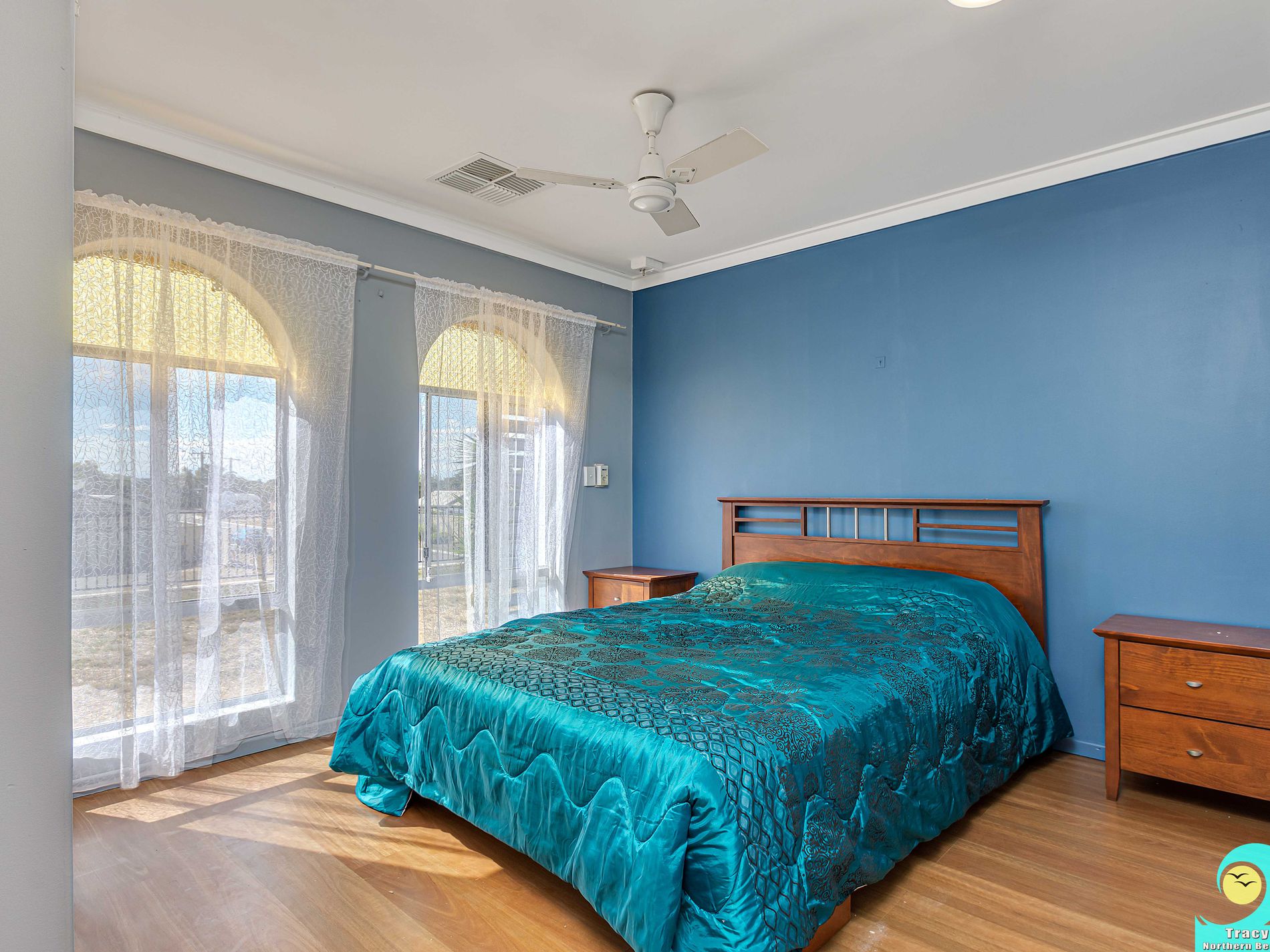 • Master bedroom with ceiling fan, electric security shutters and large organised wardrobe.