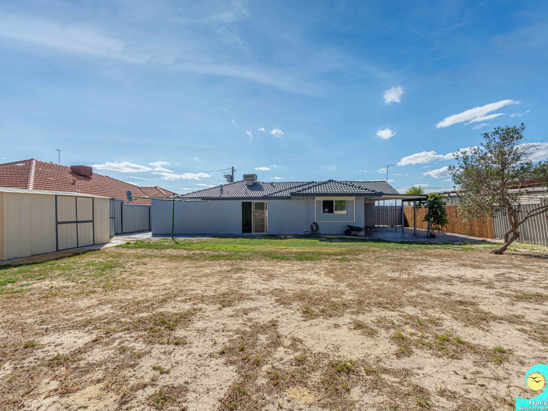 • Outside there is a huge flat back yard – plenty of space for a big shed or granny flat with drive through access through the carport and side gate.