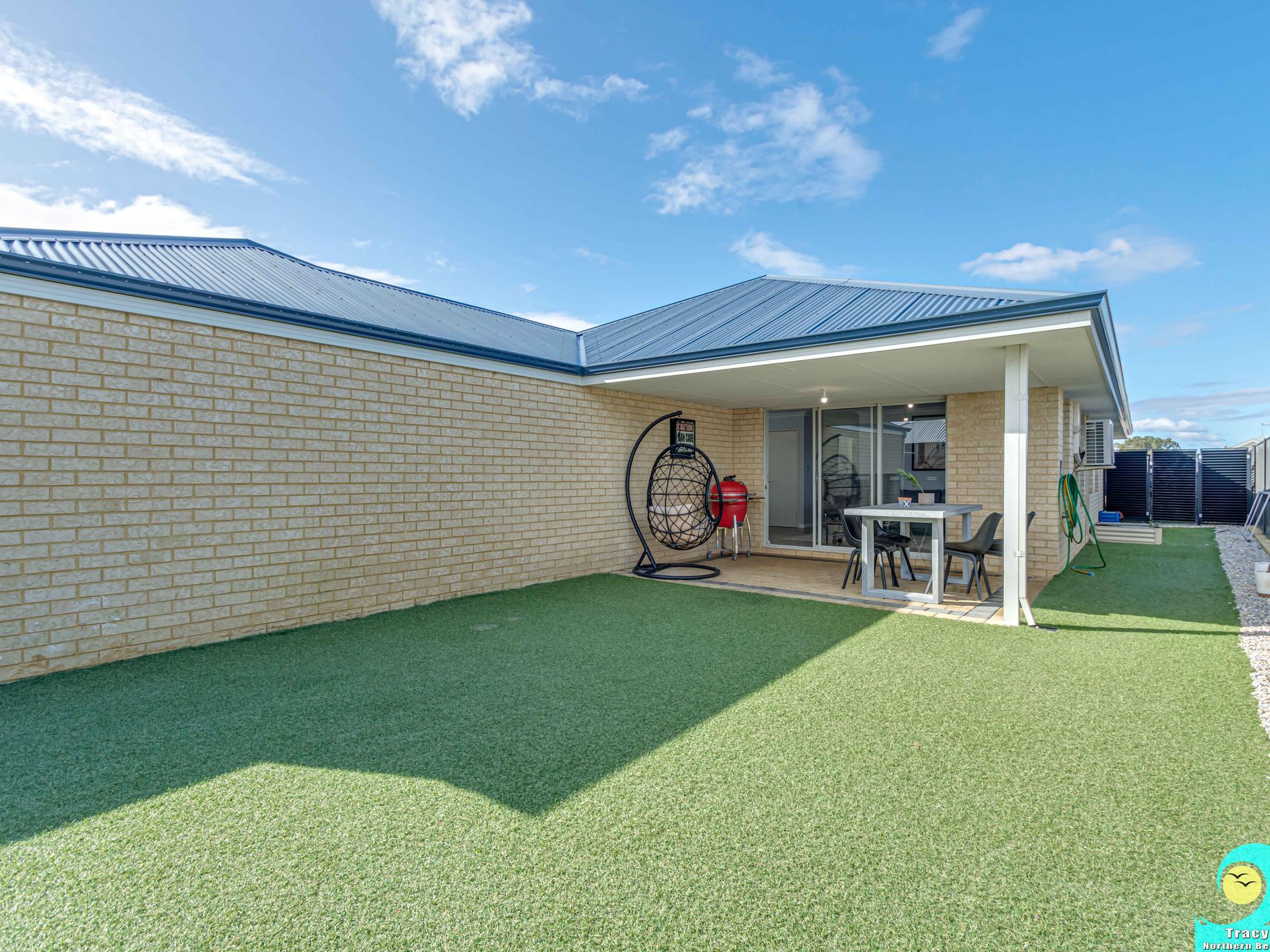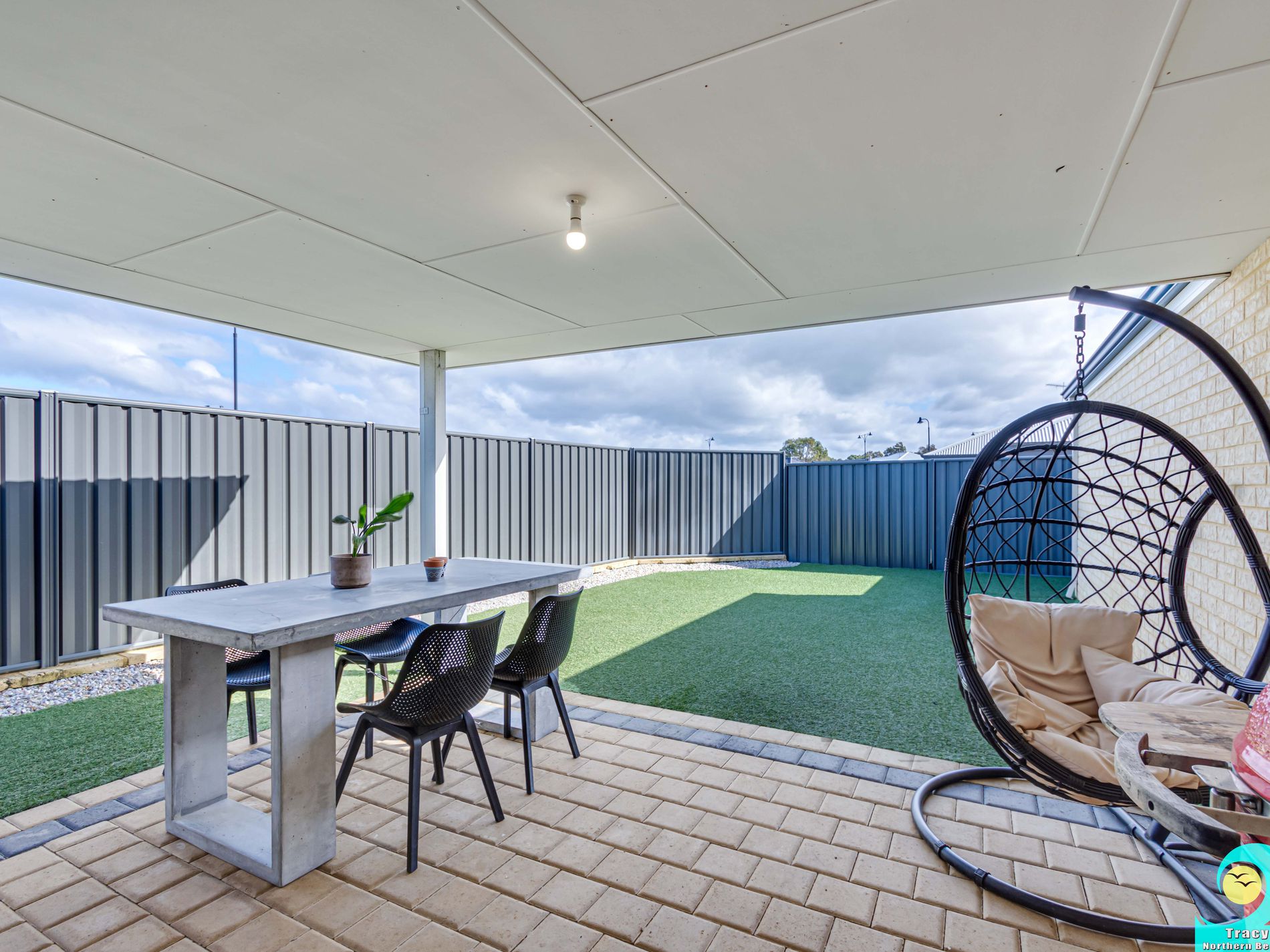 • Covered alfresco area with artificial turf to the rear.