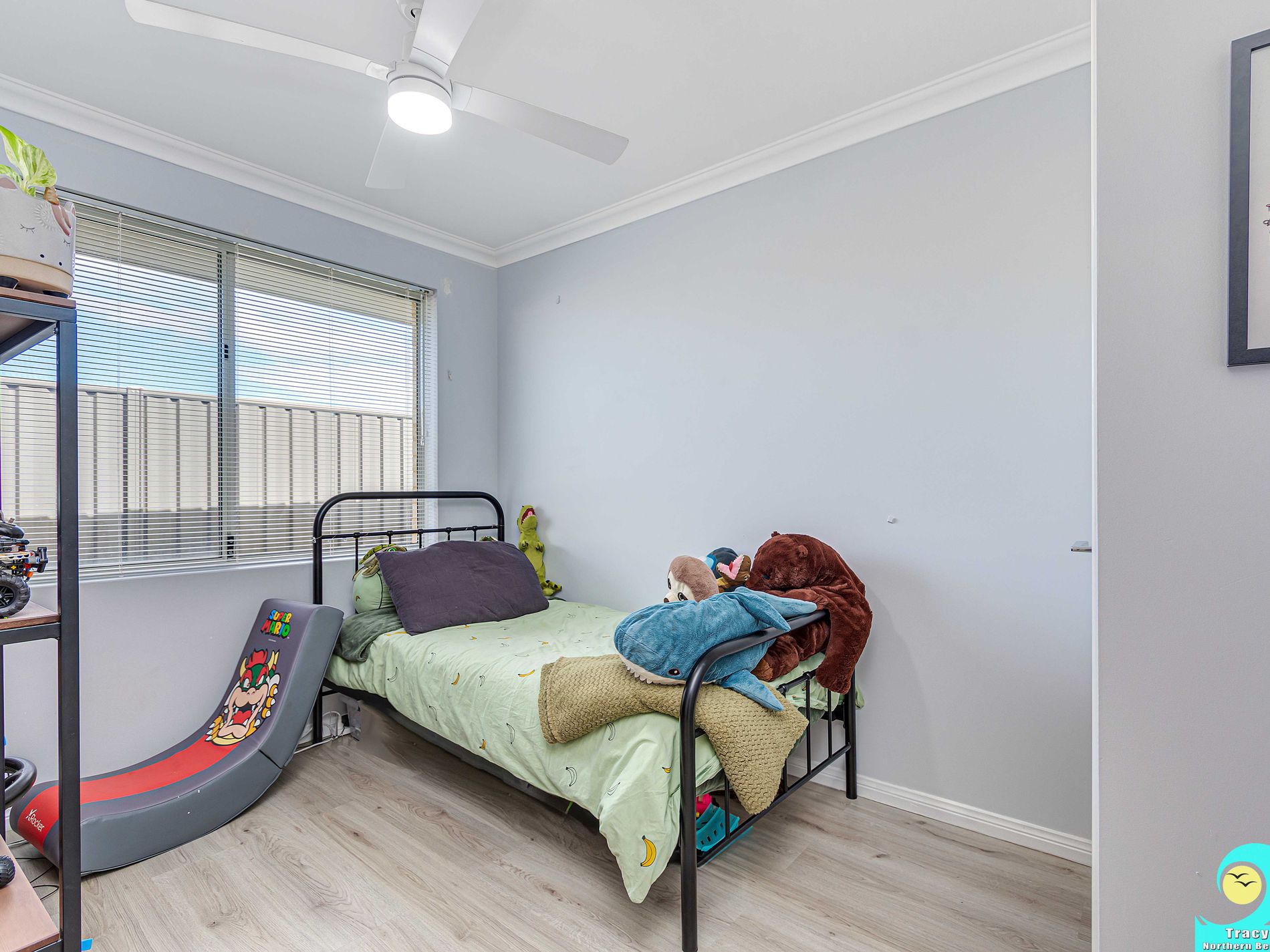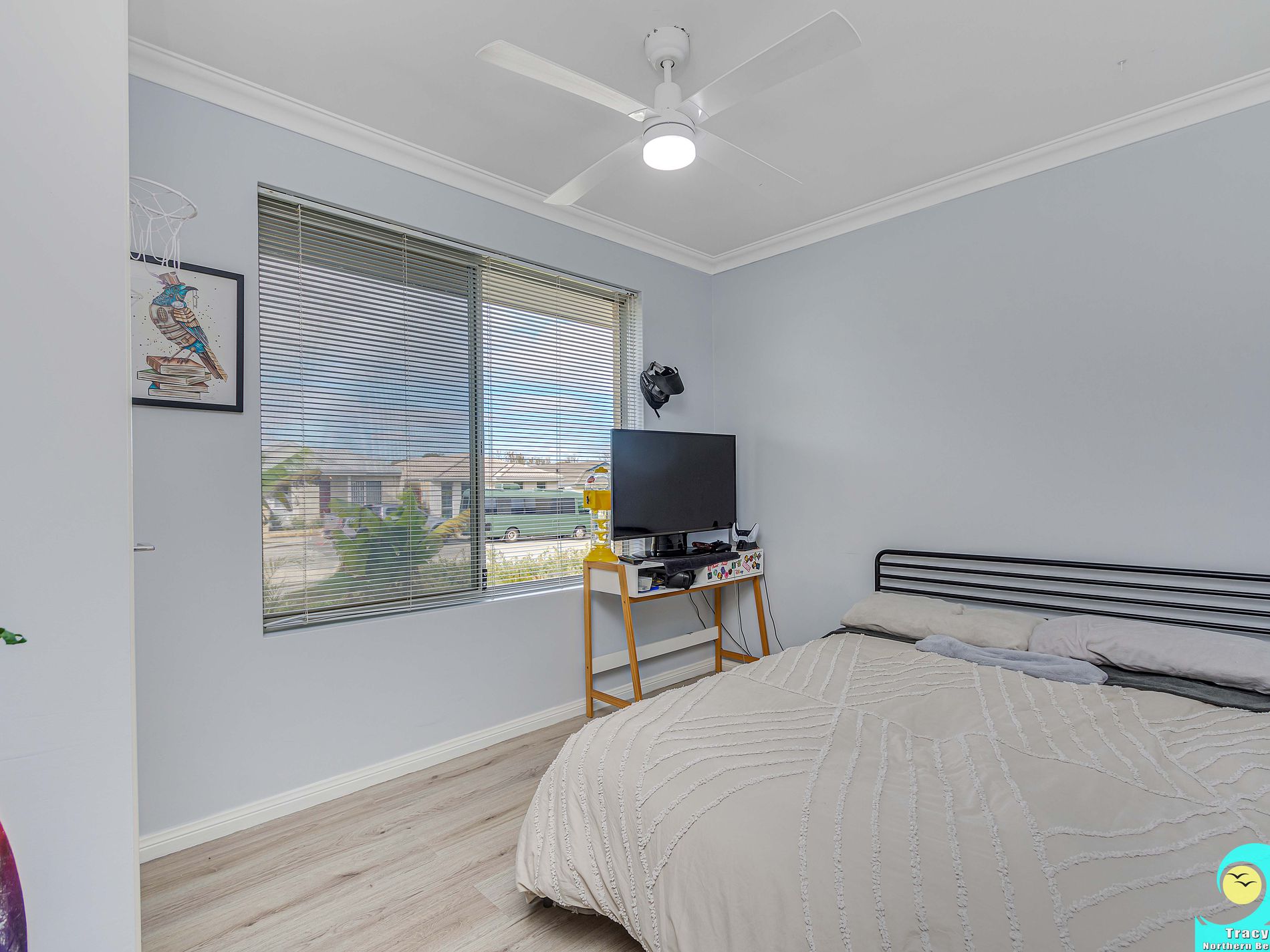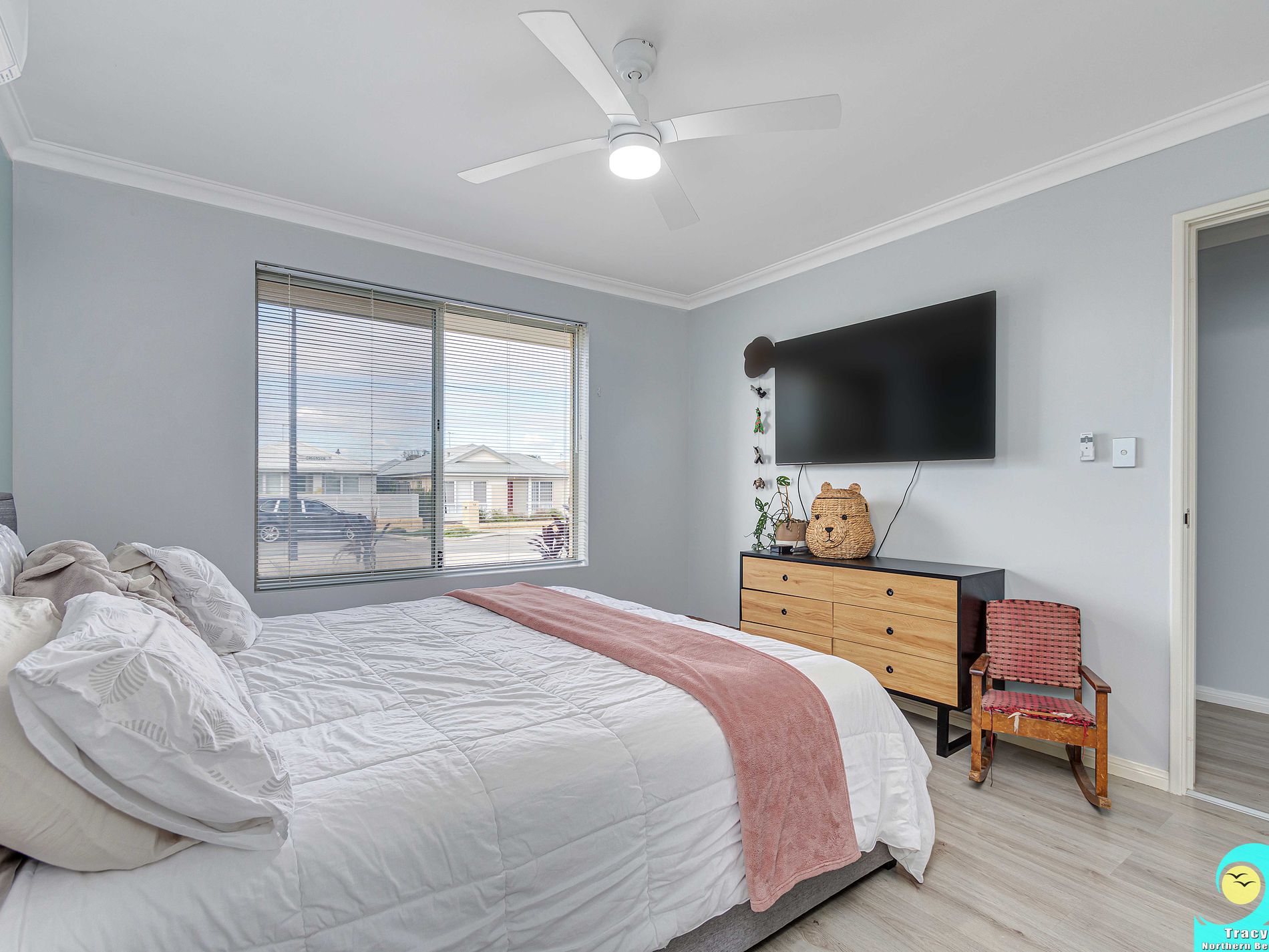 • Bedrooms 2 and 3 are both queen-sized with ceiling fans and single robes.
