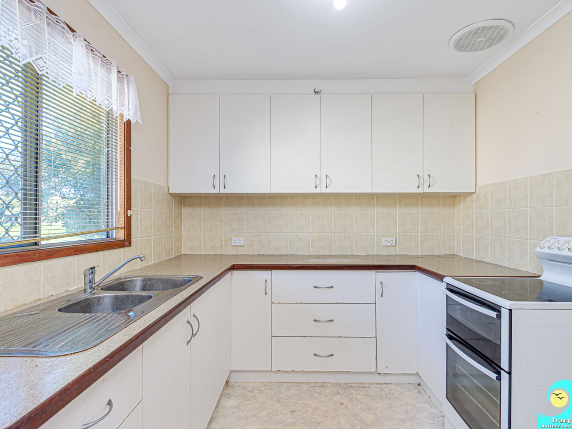 * Kitchen with plenty of cupboard and bench-space, double stainless steel sink and new mixer, overhead cupboards, electric free-standing oven, large fridge recess and plenty of power points.