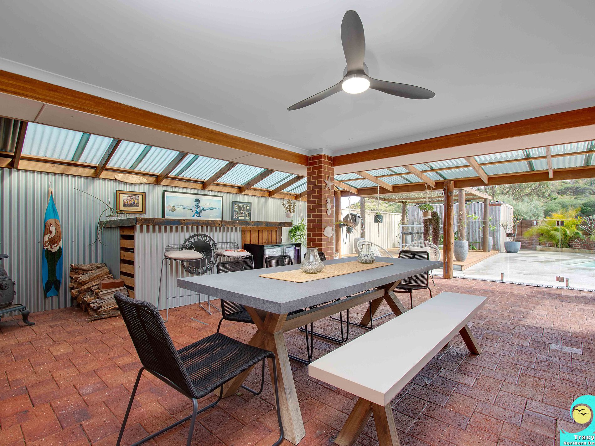 • The alfresco/patio is set up for entertaining with a bar and pot belly stove to make the area usable all year round.