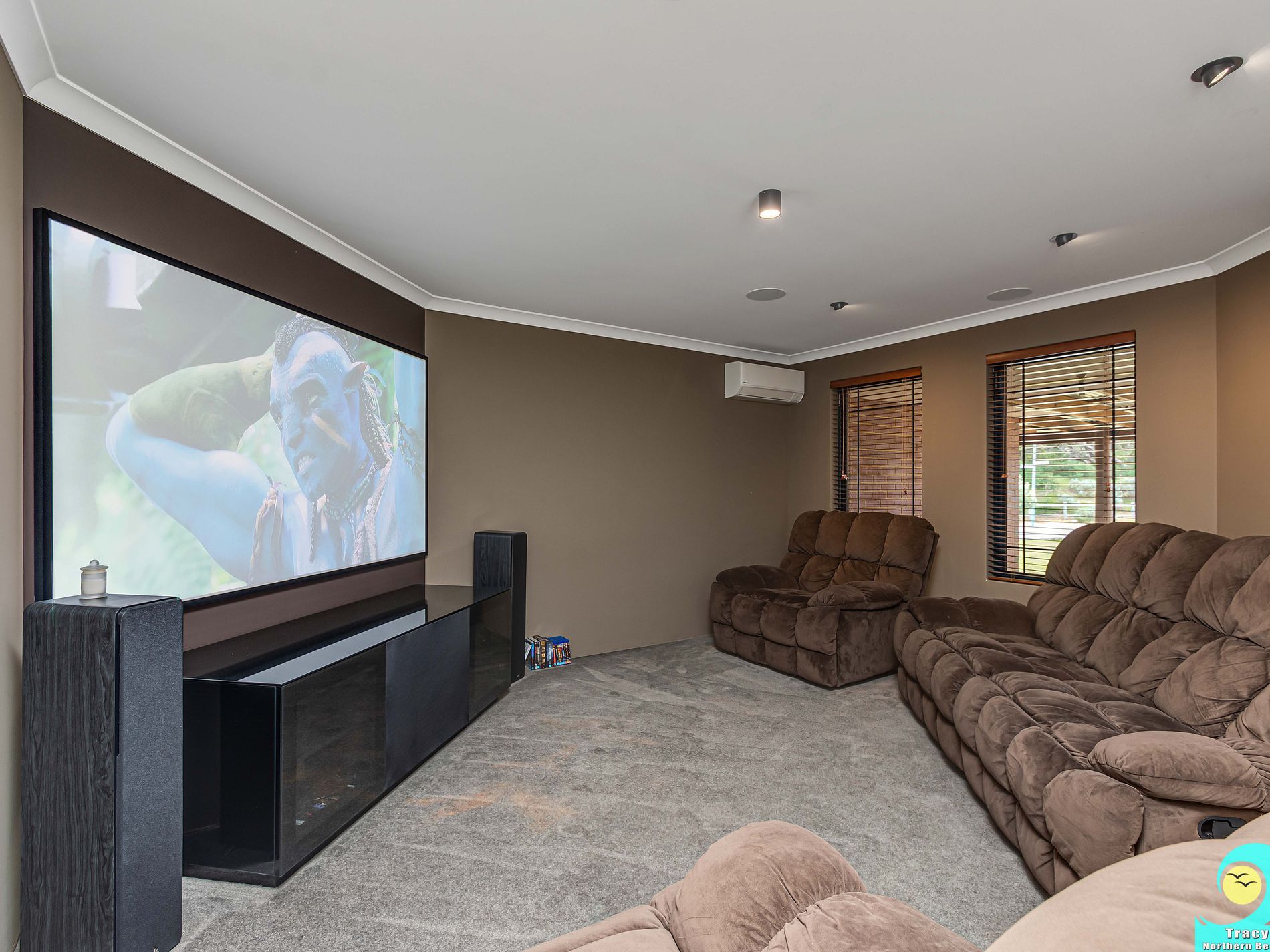 • The generous fully enclosed media room is the perfect space to relax and enjoy a movie or the footy with built in speakers in the ceiling and reverse cycle split AC system.