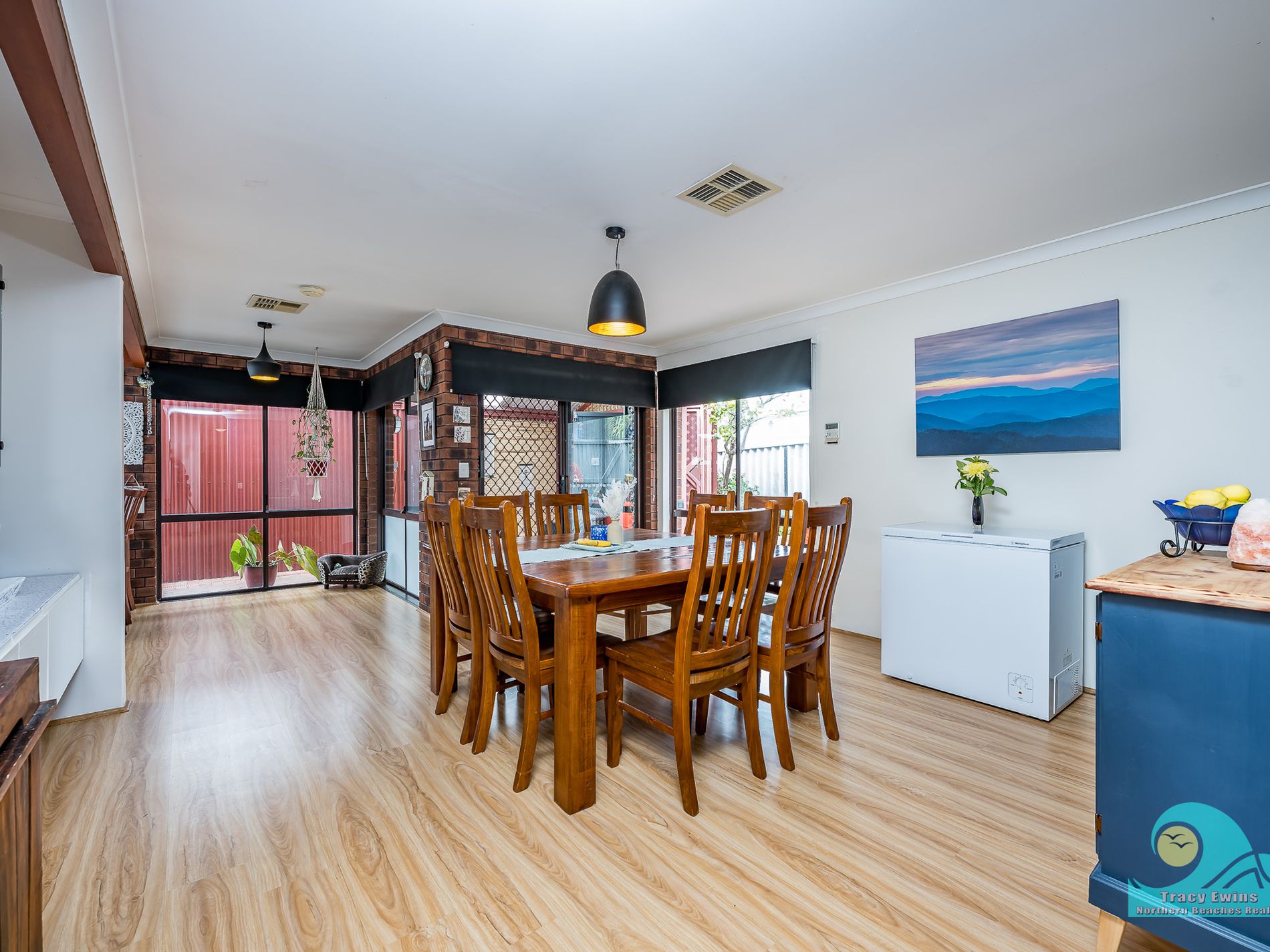 • Farmhouse style open plan kitchen and large informal dining area with plenty of cupboard and bench space, space for a double fridge, corner walk-in pantry, double wall oven, electric cooktop, rangehood with lovely big windows over the bench making it bright and sunny.