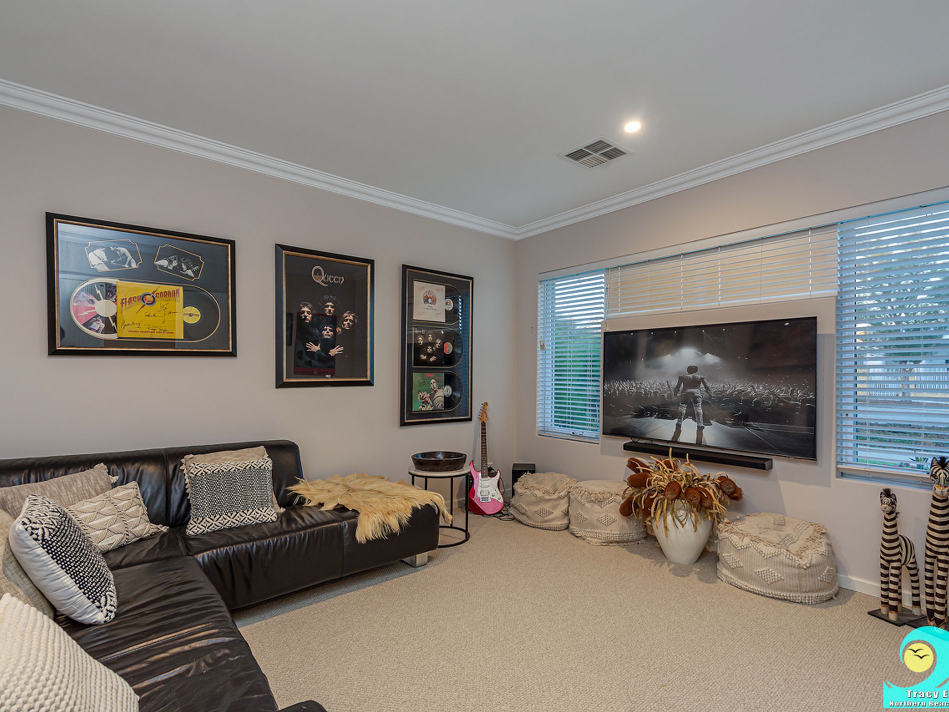 • Bedrooms 2 and 3 on ground floor are both extra generous with extra-large robes and bedroom 4 or the media room/study/3rd living is fully enclosed with double doors and could easily have a robe added to become bedroom 4.