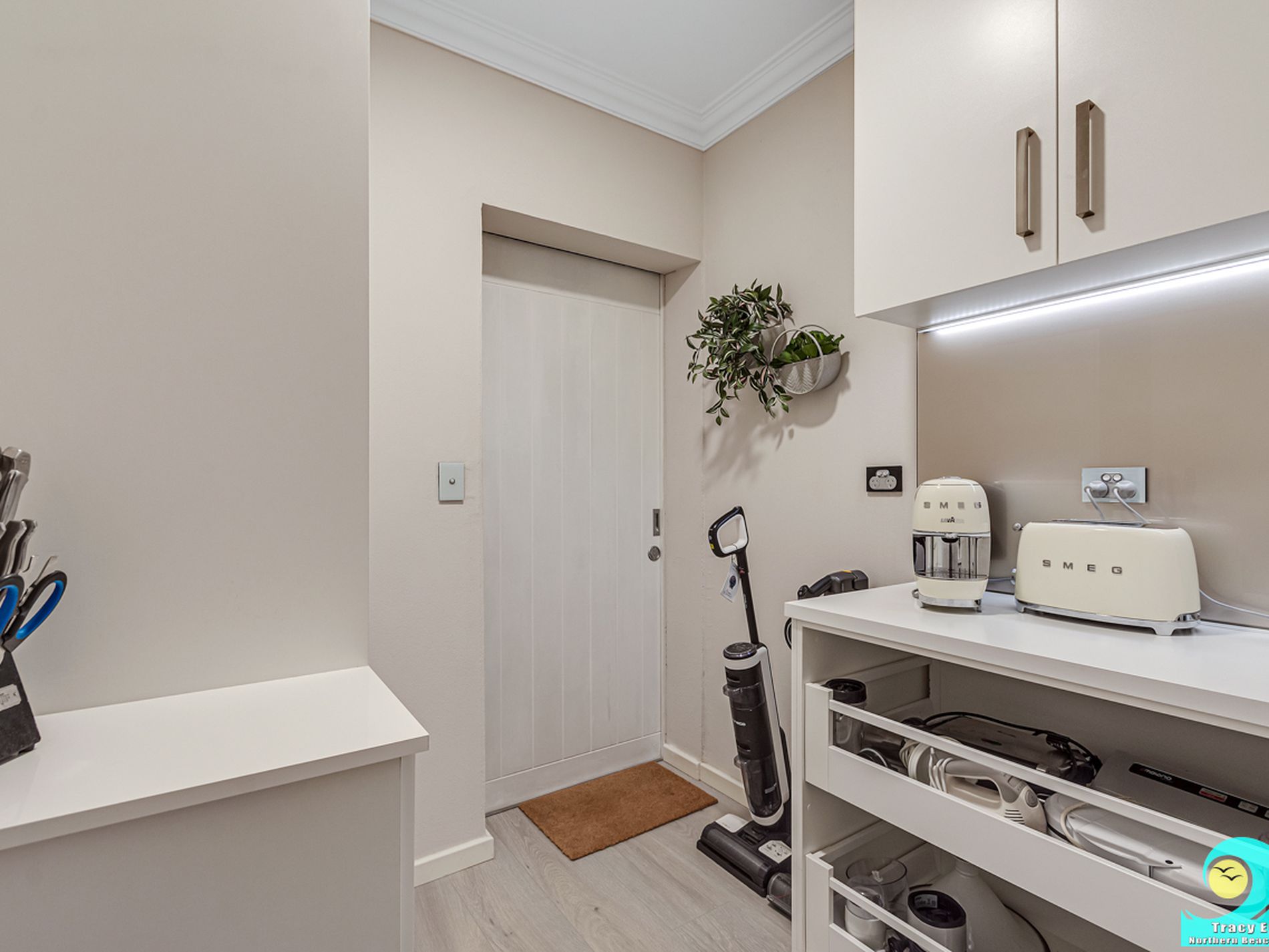 • Scullery with loads of storage, stone bench area for appliances and handy direct shoppers’ entry from the garage.