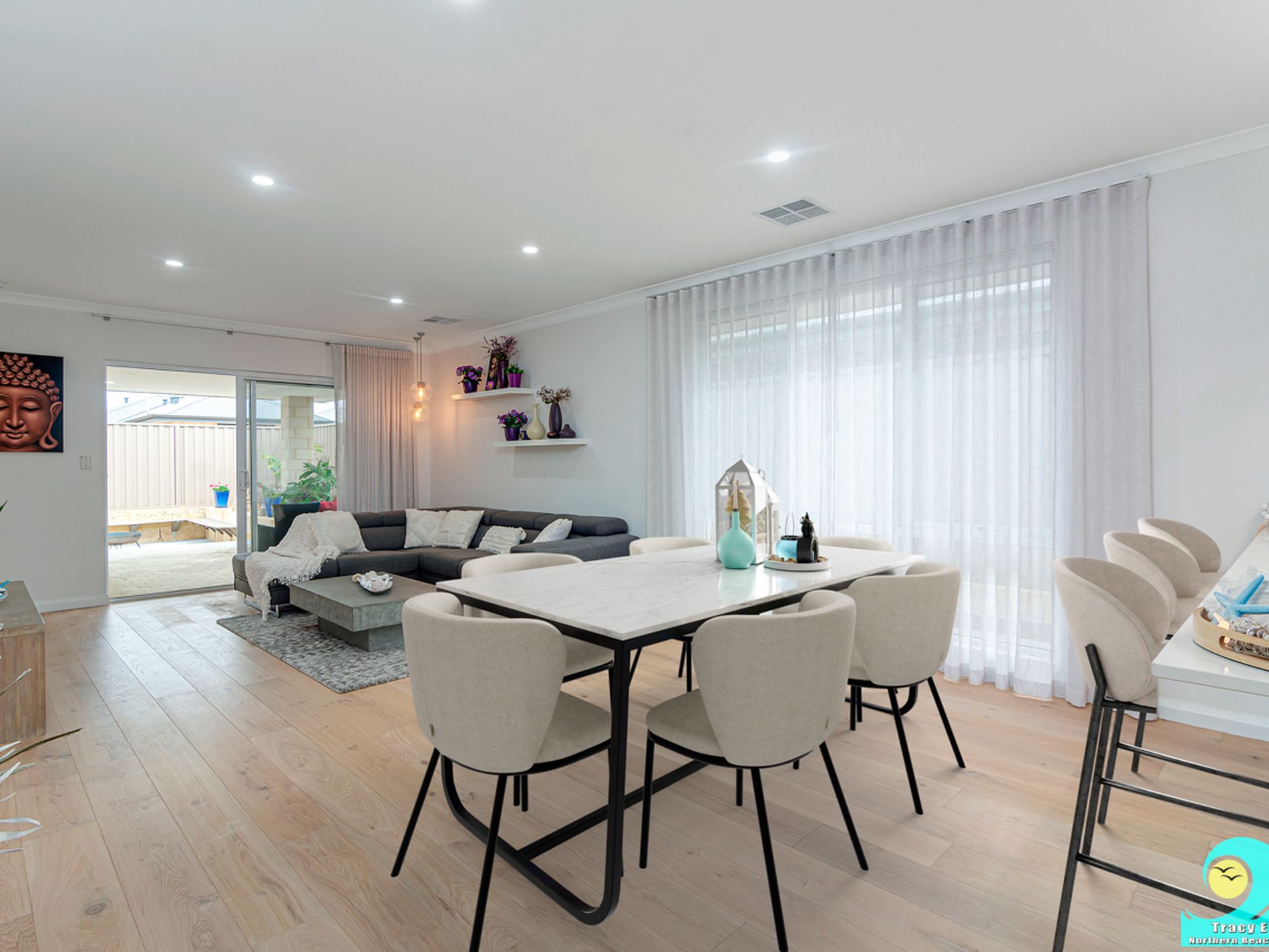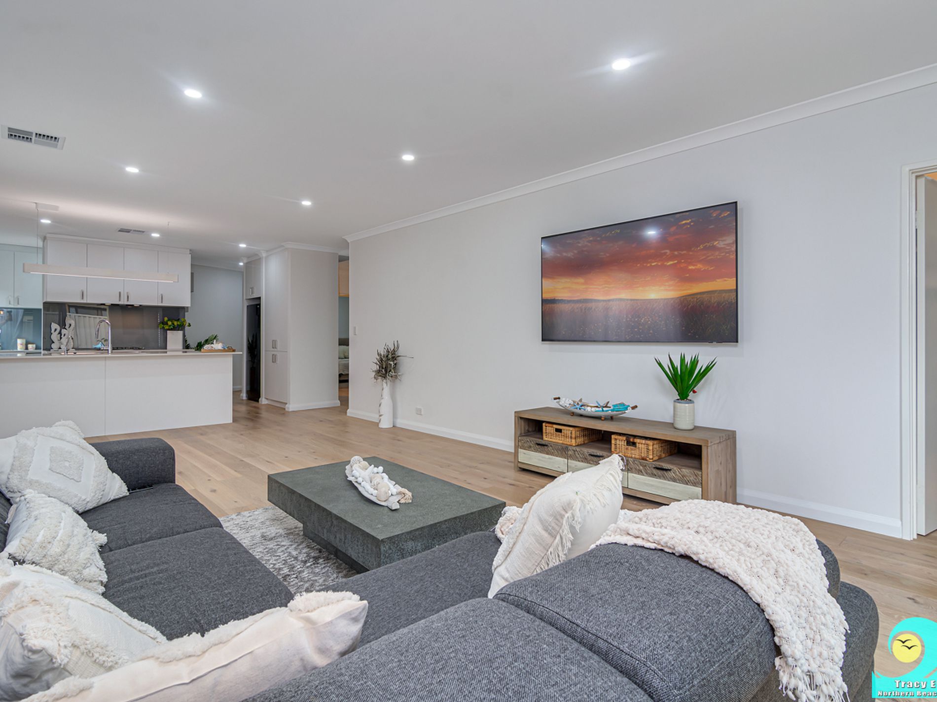 • Essa stone, skirtings and downlights throughout.