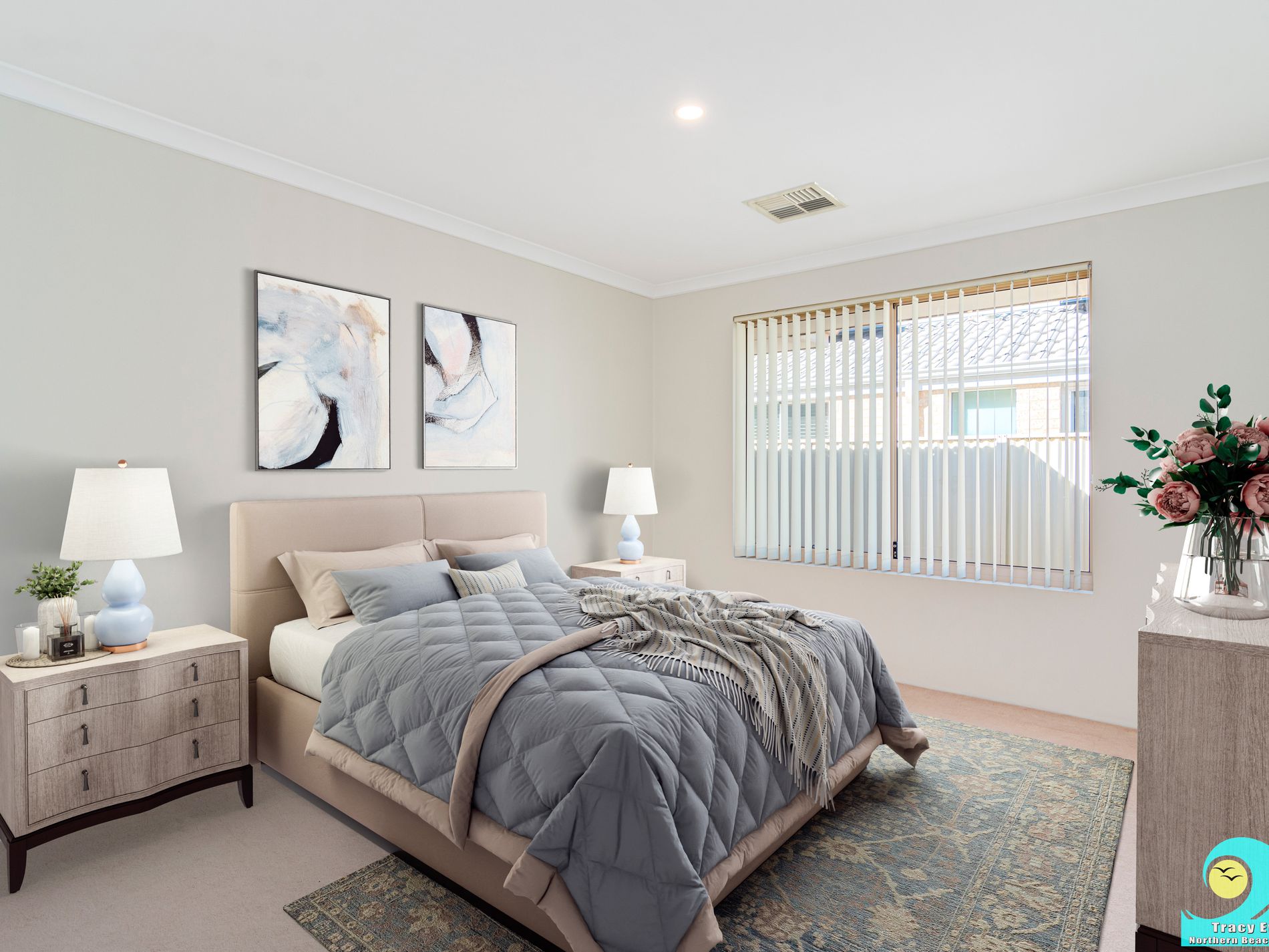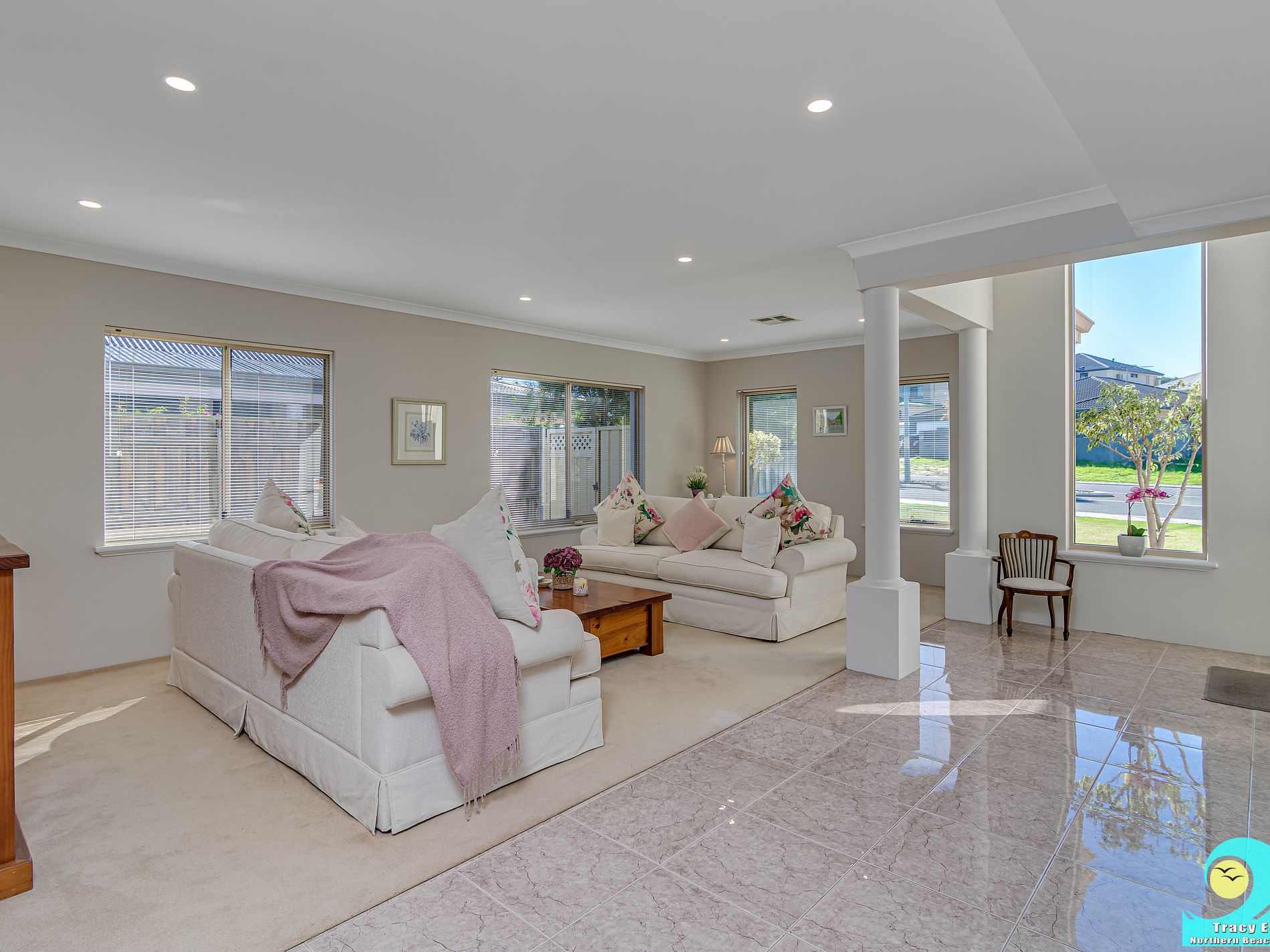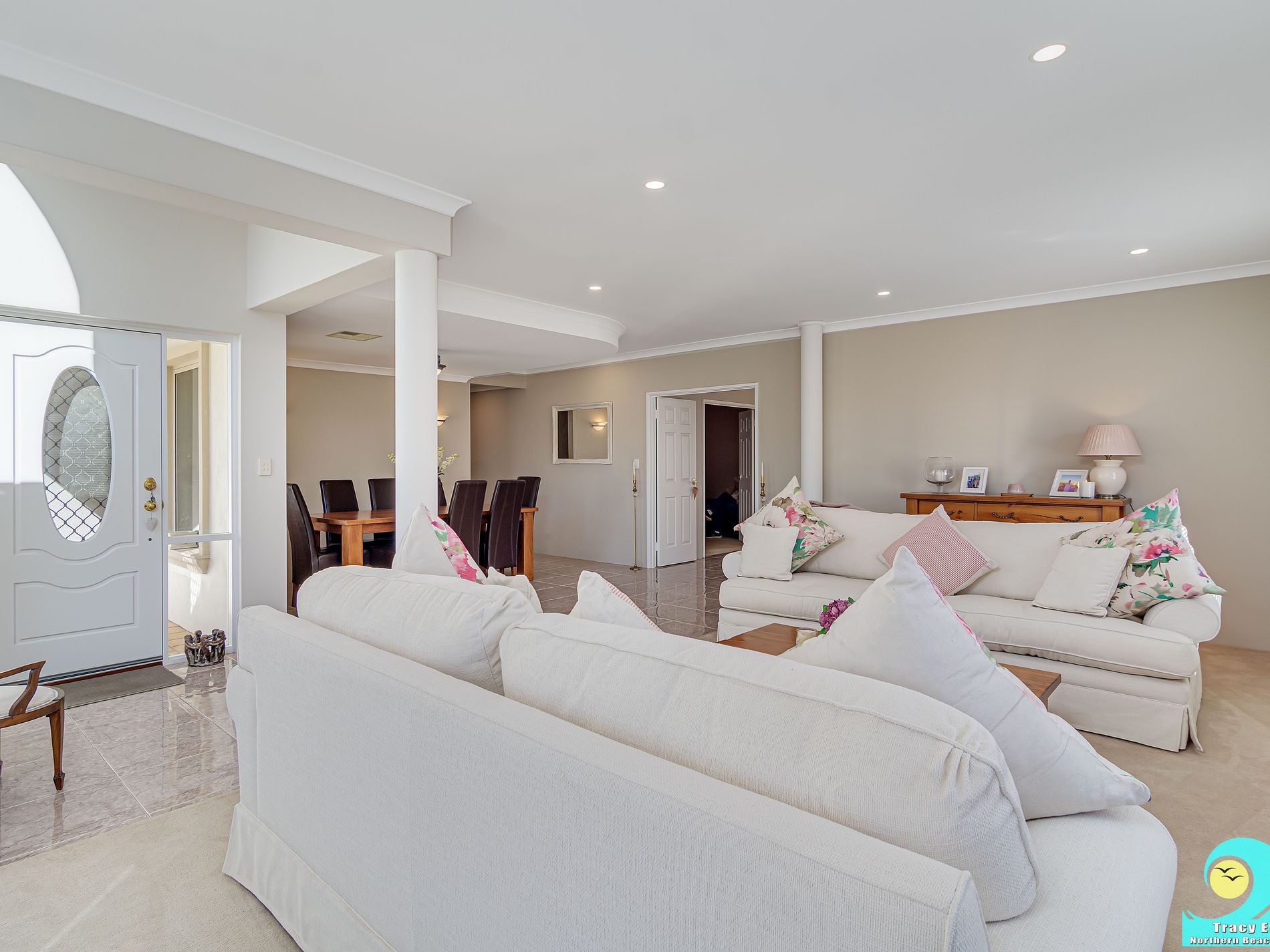 • Elegant tiling throughout all high traffic areas and wet areas, with carpet to formal living area, bedrooms and theatre room.