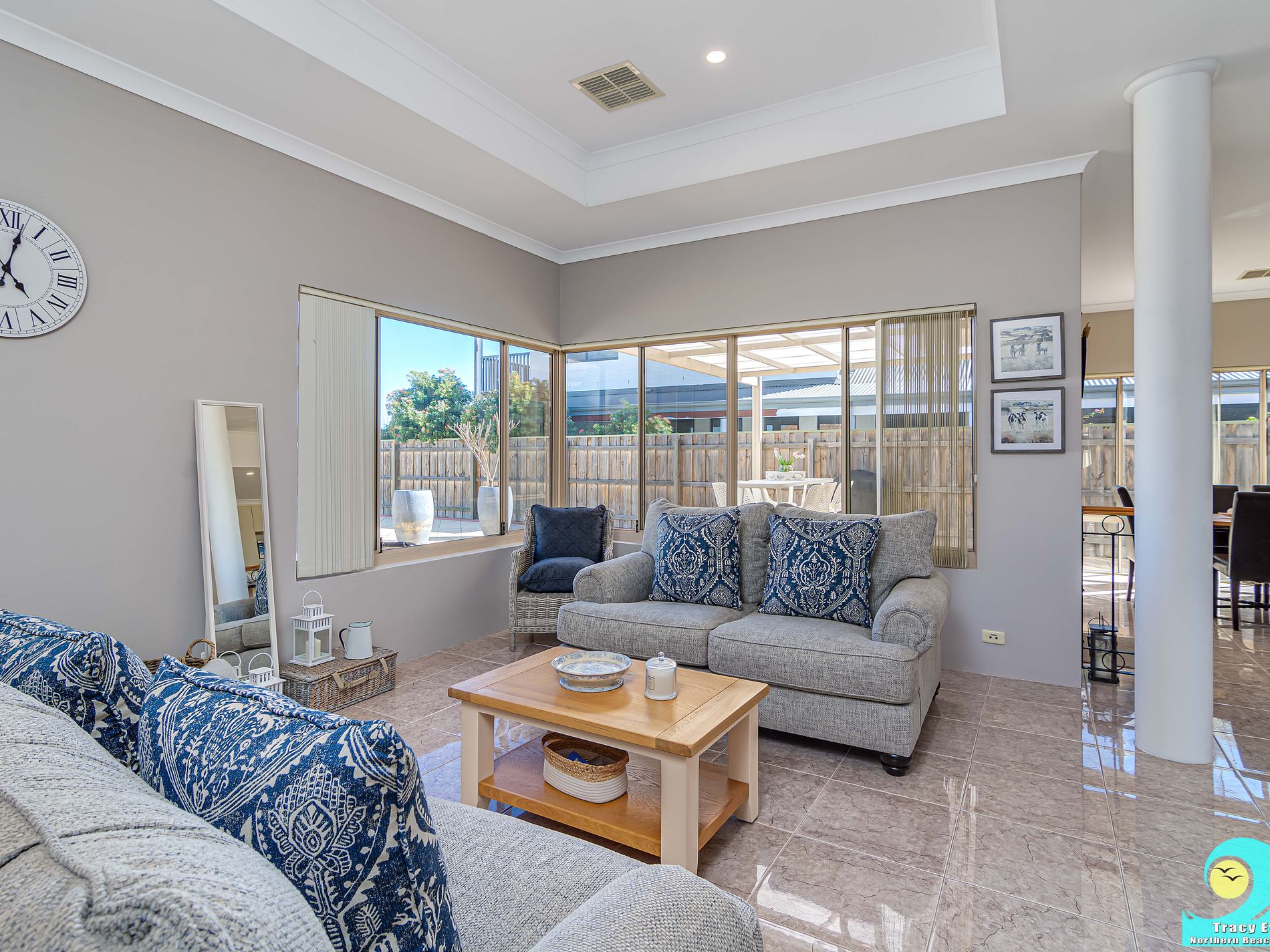 • Formal living and dining is truly elegant, light and bright with feature curved ceiling over the formal dining area.