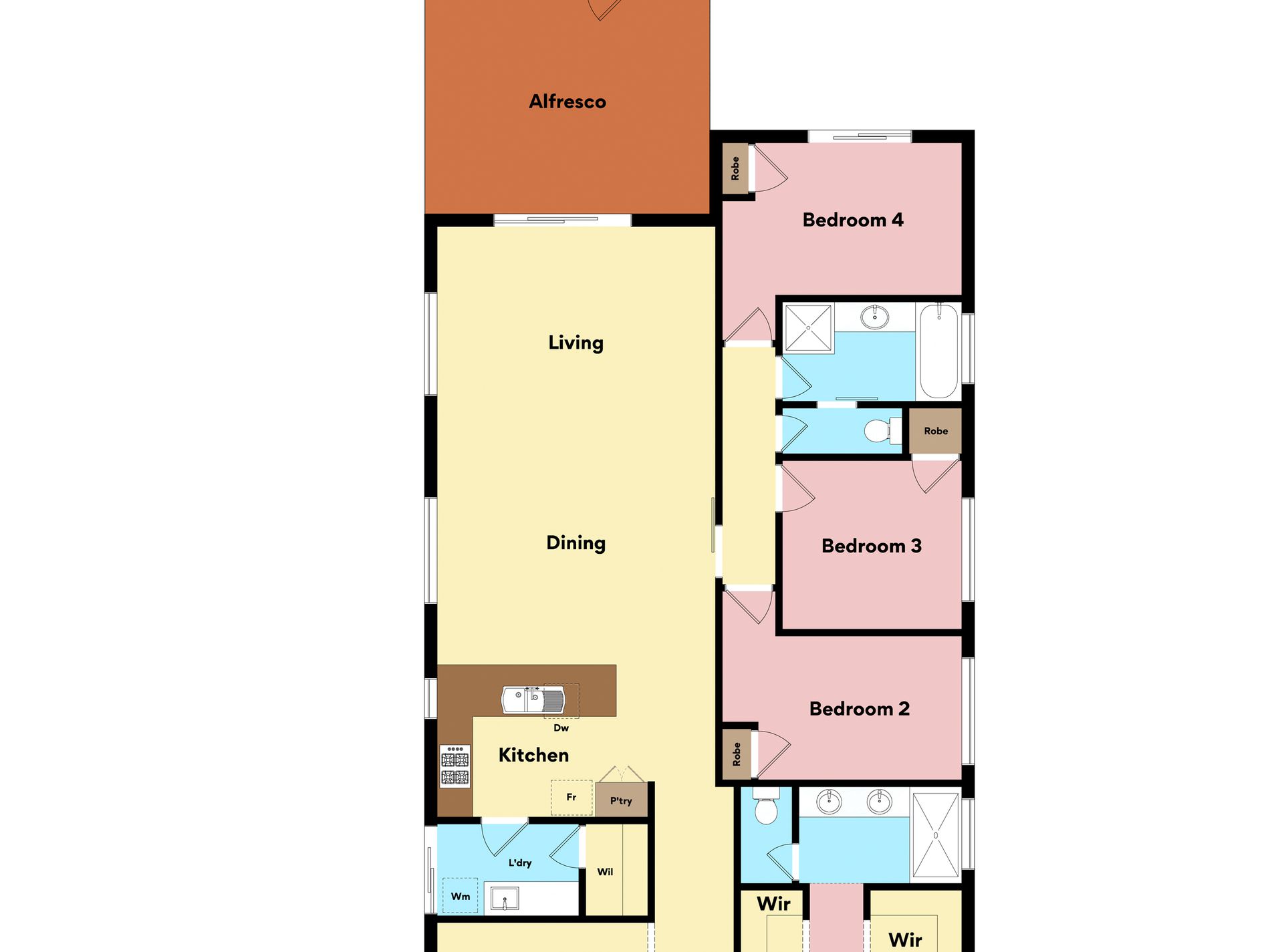 Situated in the popular Vertex Estate on an elevated 469m2 block sits this well designed 4 bedroom, 2 bathroom home built in 2020. The property features include a large master bedroom with his and her robes, ensuite with double vanity and double size shower, separate theatre room at the front of the home, 3 further queen sized bedrooms – one of which has a separate slider opening to the driveway – perfect for an at home business!