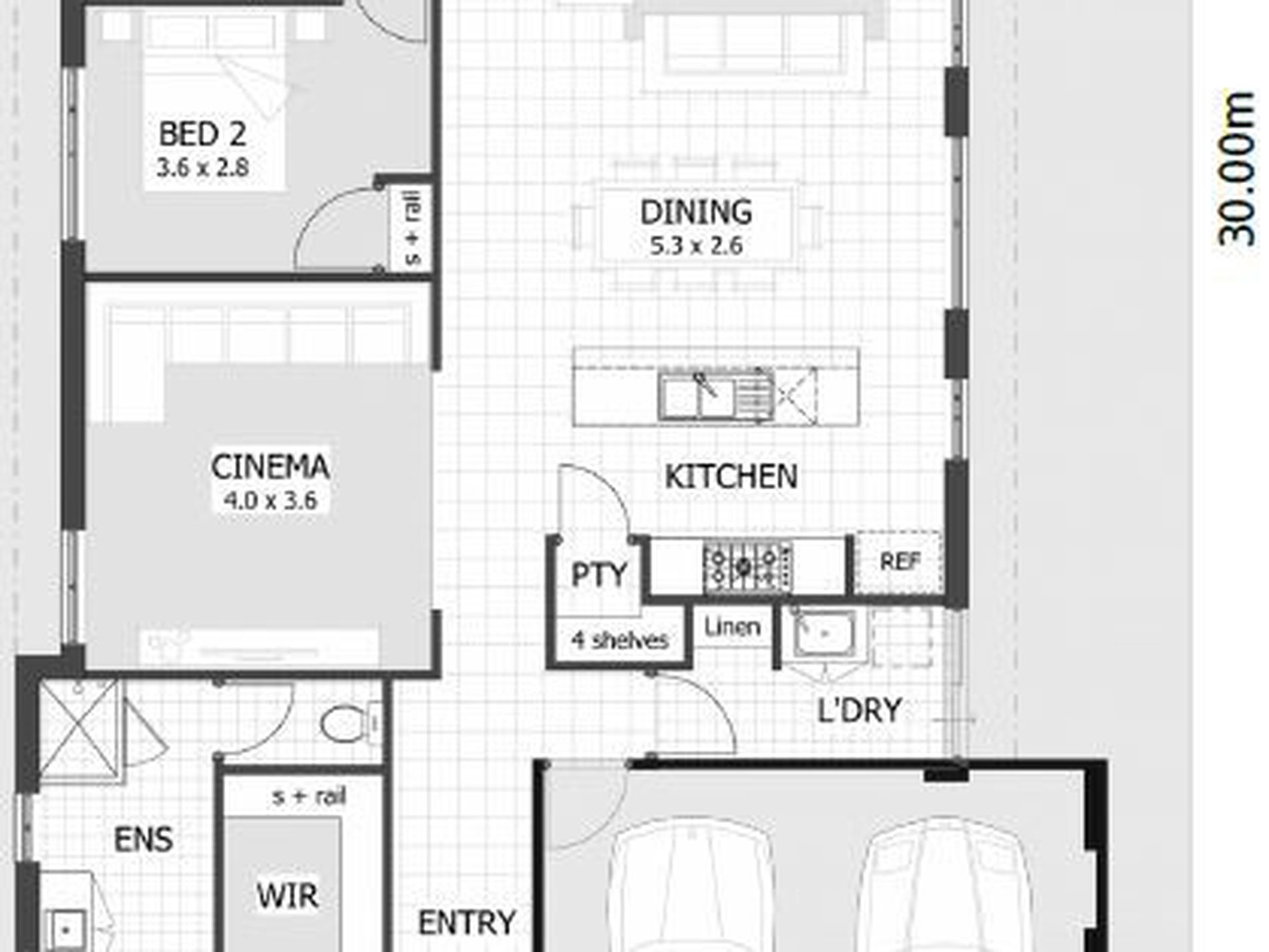 * Media room is just off the main area and very generous.