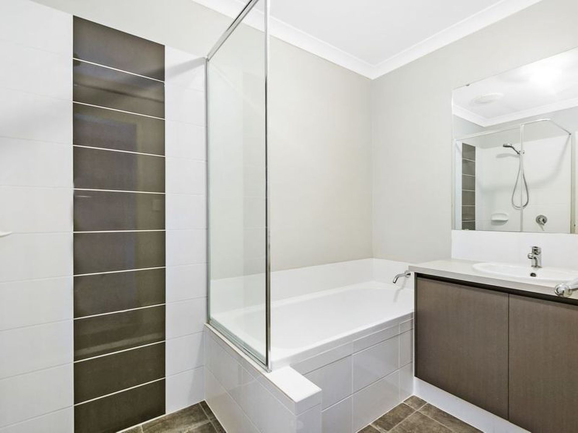 Main bathroom with shower, vanity and bath.
