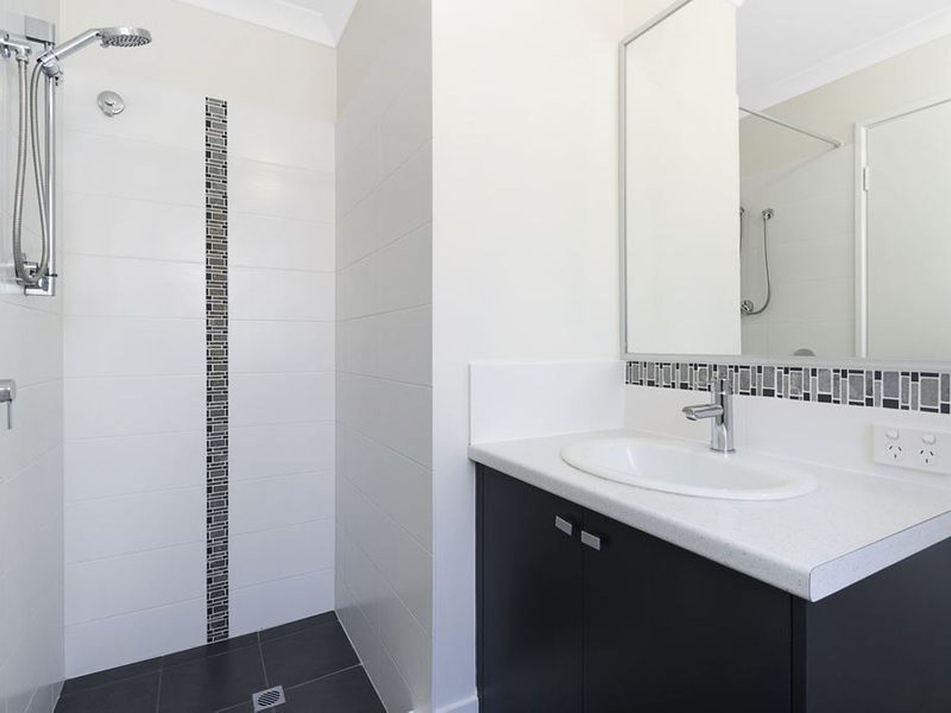 -Attractive glass door from hall to living area and bench with power points on entry to the living area.