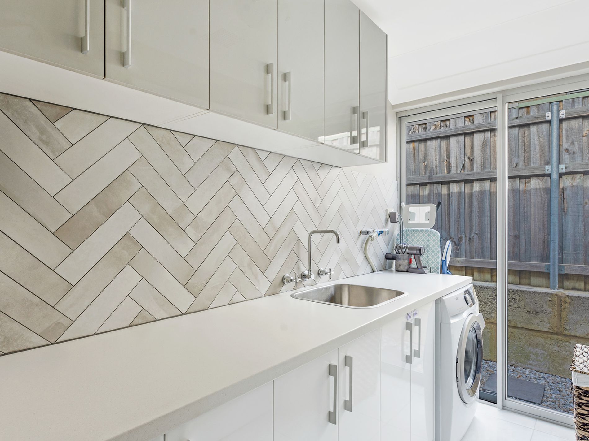 * Great laundry, beautifully decorated with a large benchtop and overhead cupboards.