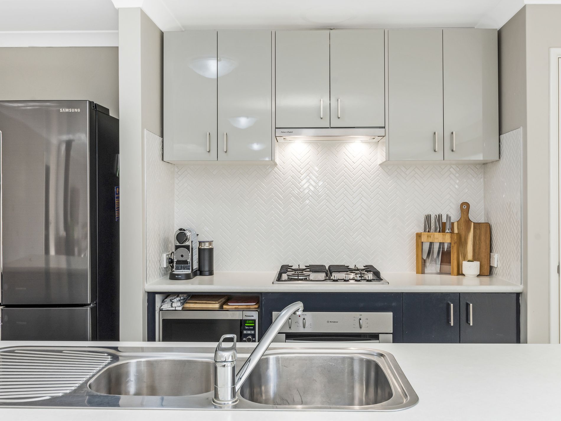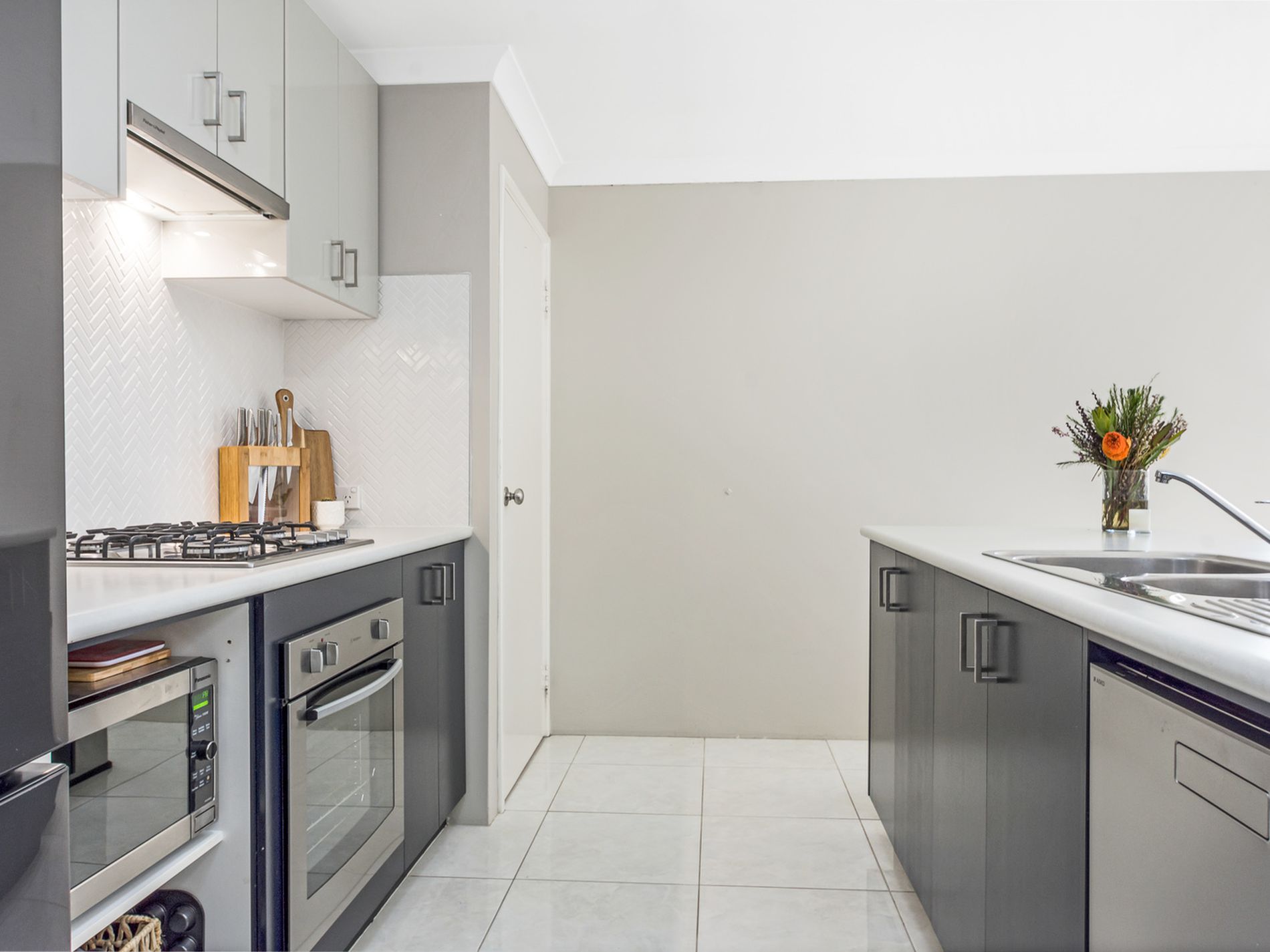 * Kitchen is well-appointed with space for your large fridge, breakfast bar, dishwasher, overhead cupboards and 60cm gas cook-top, under-bench oven and rangehood.
