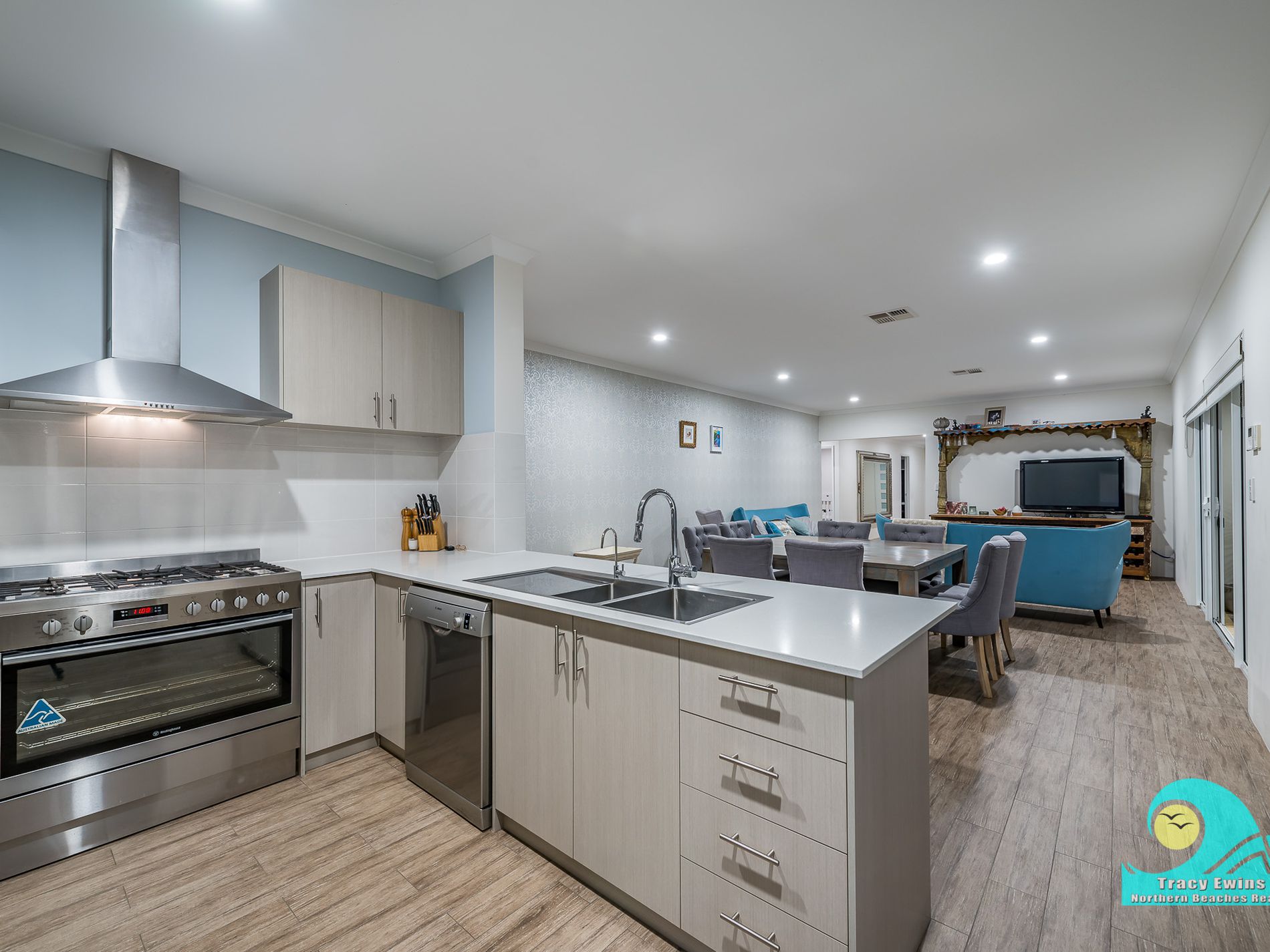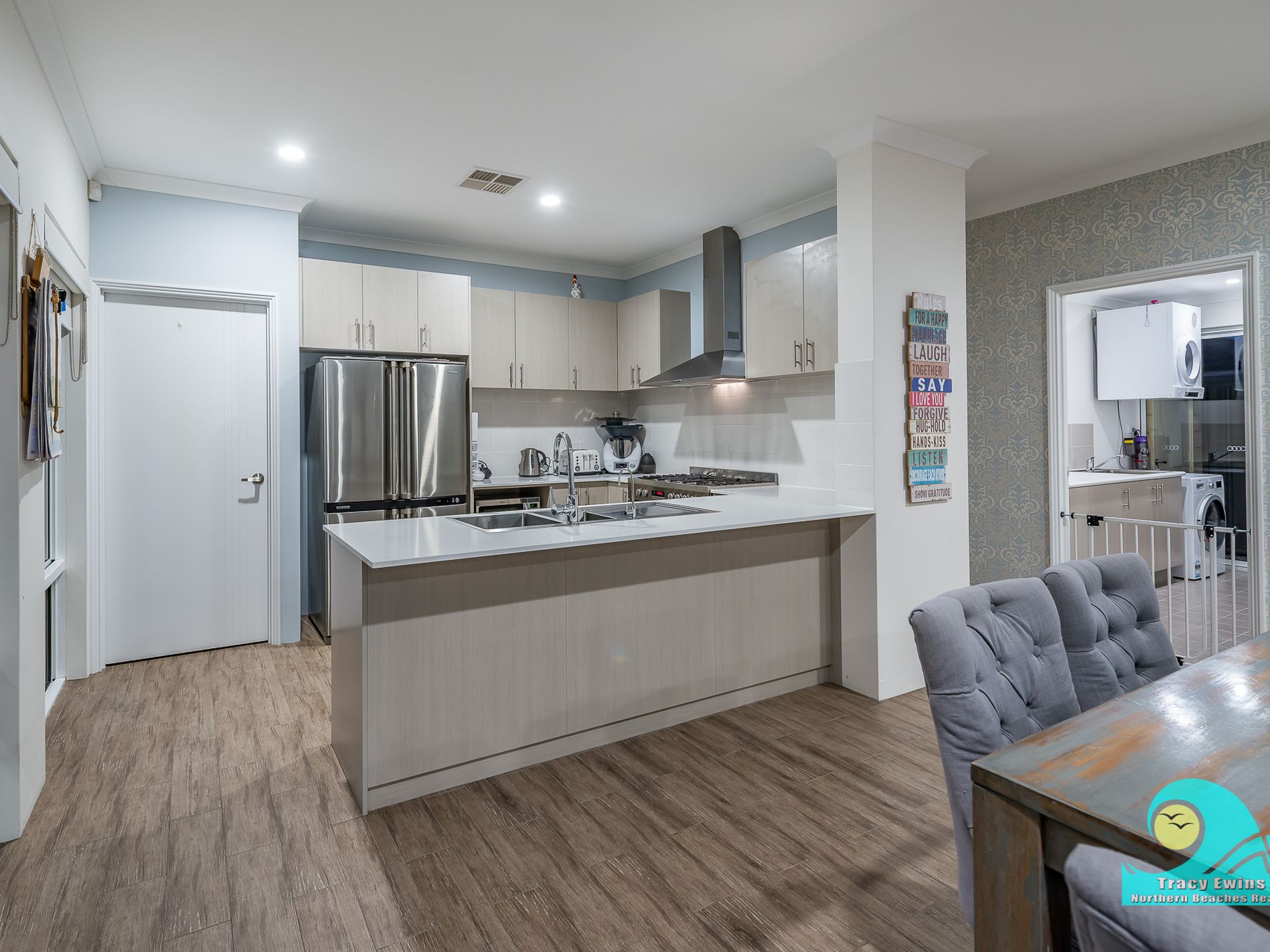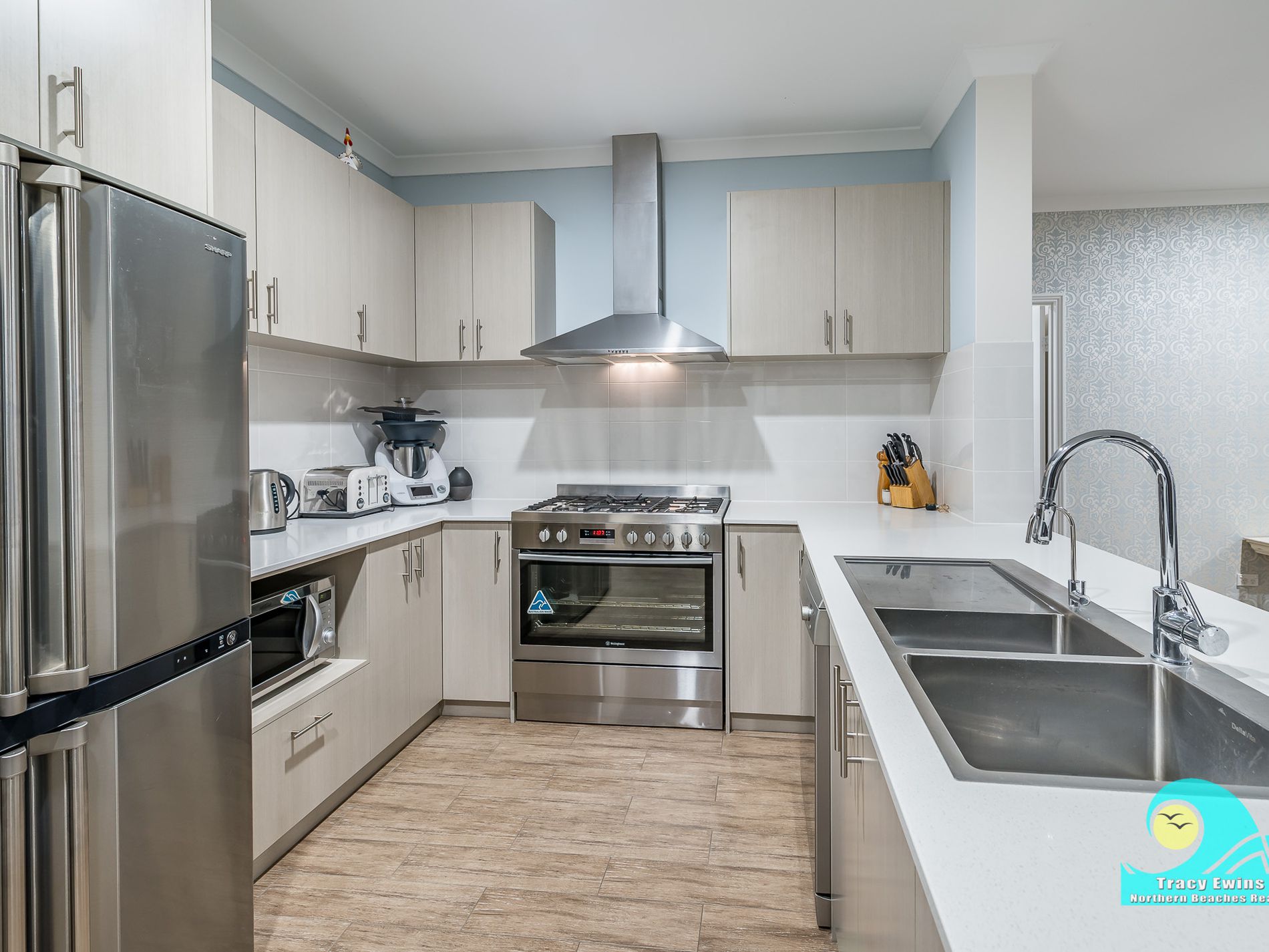 • Kitchen with stone-benchtops, large walk-in-pantry, double sinks, 90cm freestanding cooker and range-hood, overhead cupboards, water-filter, microwave shelf, large fridge recess and dishwasher.