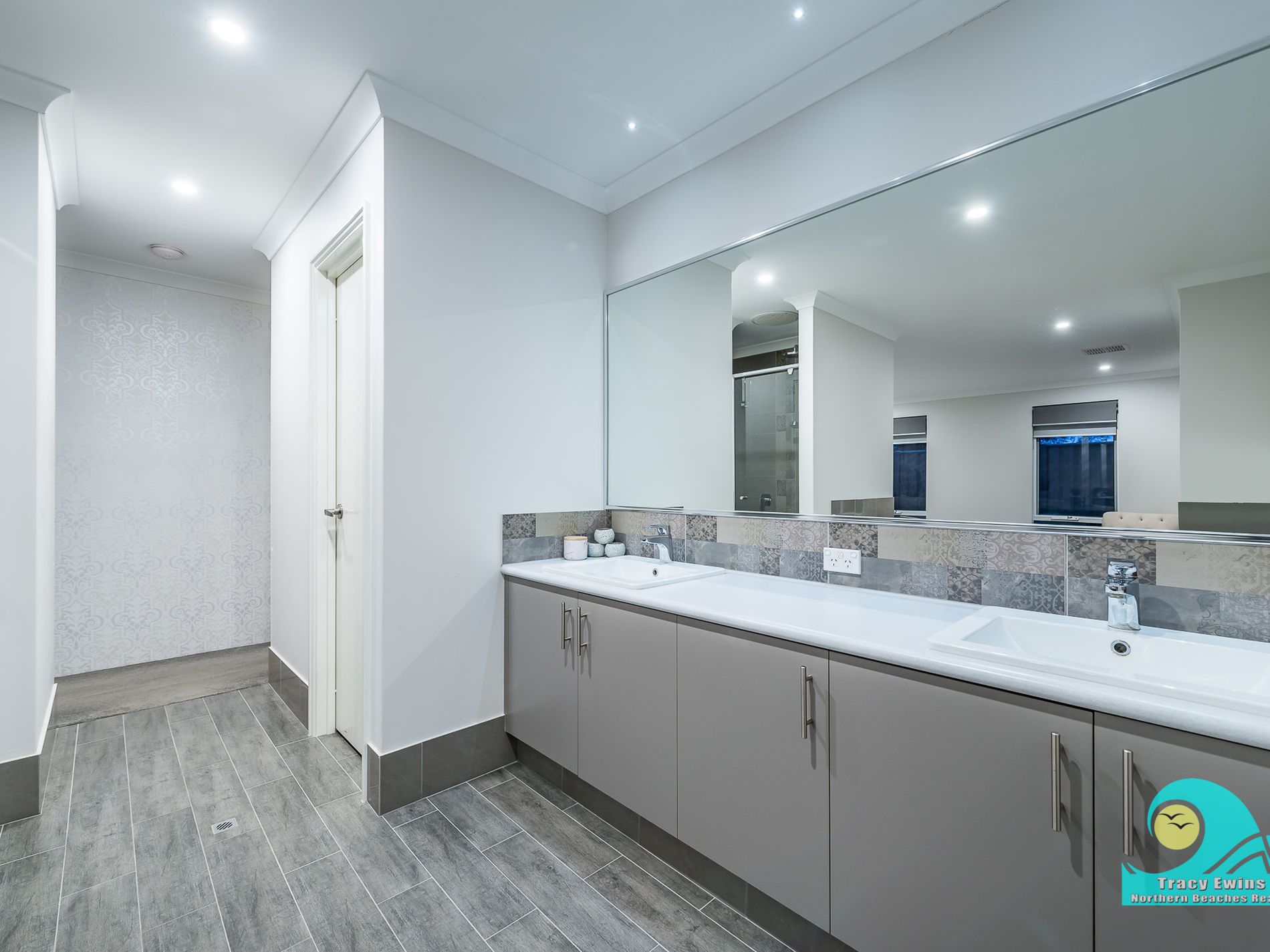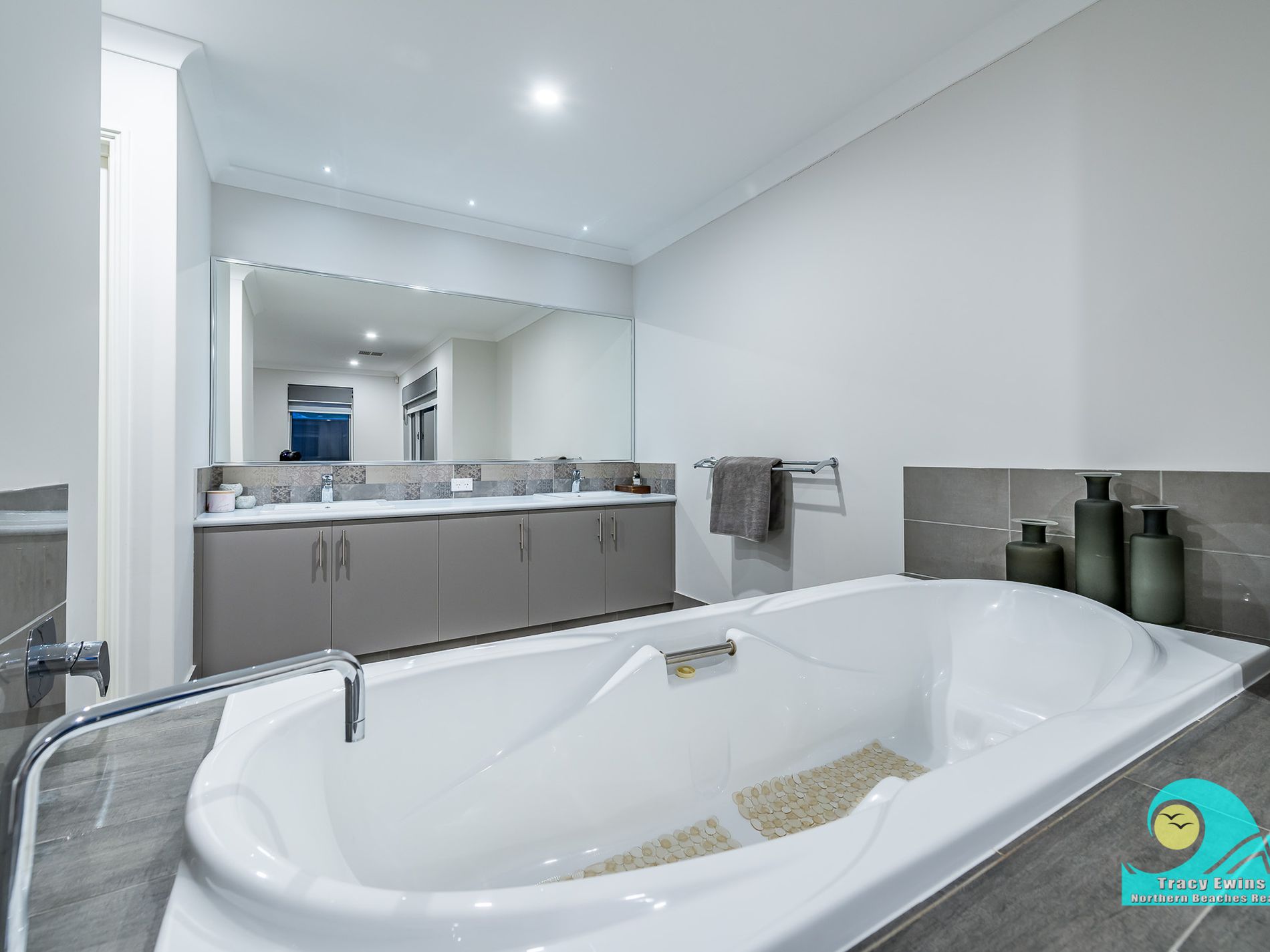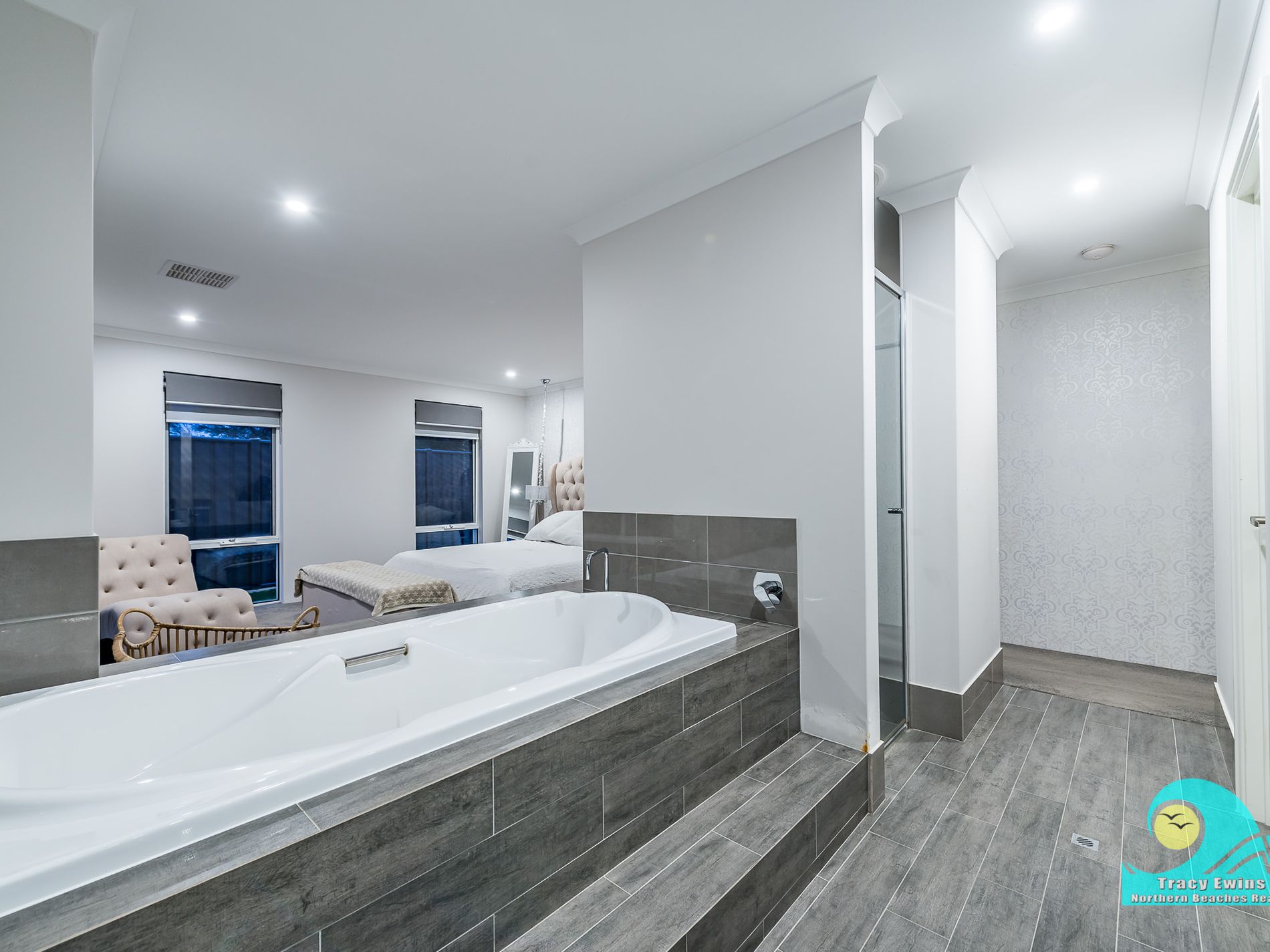 • Master bedroom is definitely special and a very different design, including a deep walk in robe, ensuite with gorgeous big step up bath-tub, double basins to the large vanity, a feature shower plus separate WC.