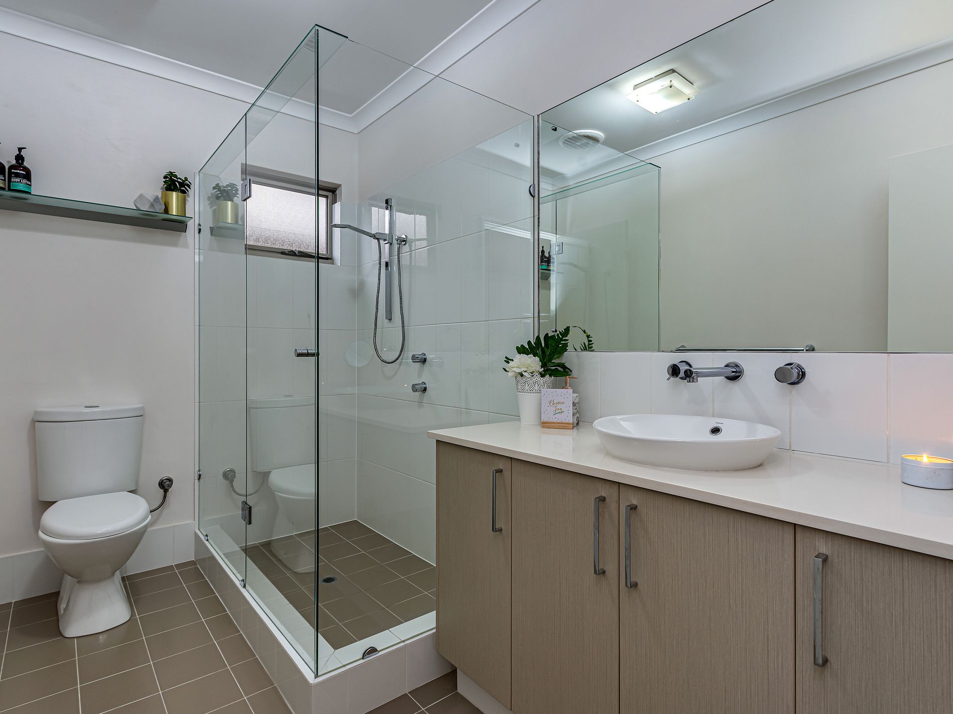• Bedroom 4 is queen-size with robe and adjacent to the beautifully appointed main bathroom with stone top to vanity and frameless shower.