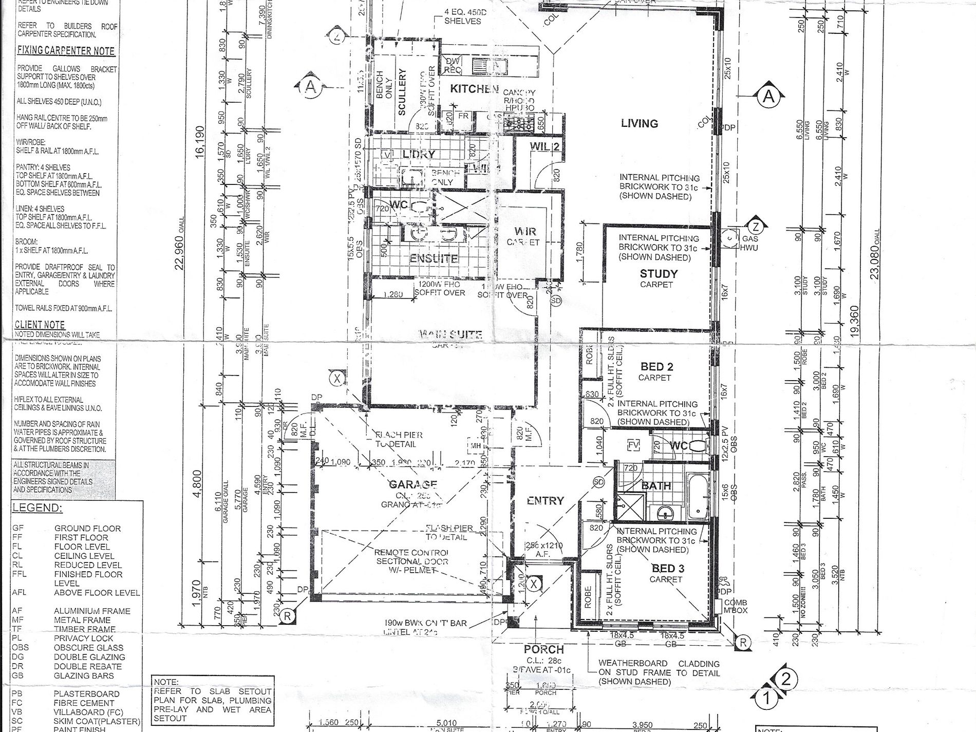 • Kitchen with breakfast bar, loads of workspace, 90cm under-bench oven, gas cook-top and rangehood, recess for a double fridge, dishwasher and leading to a large SCULLERY!!