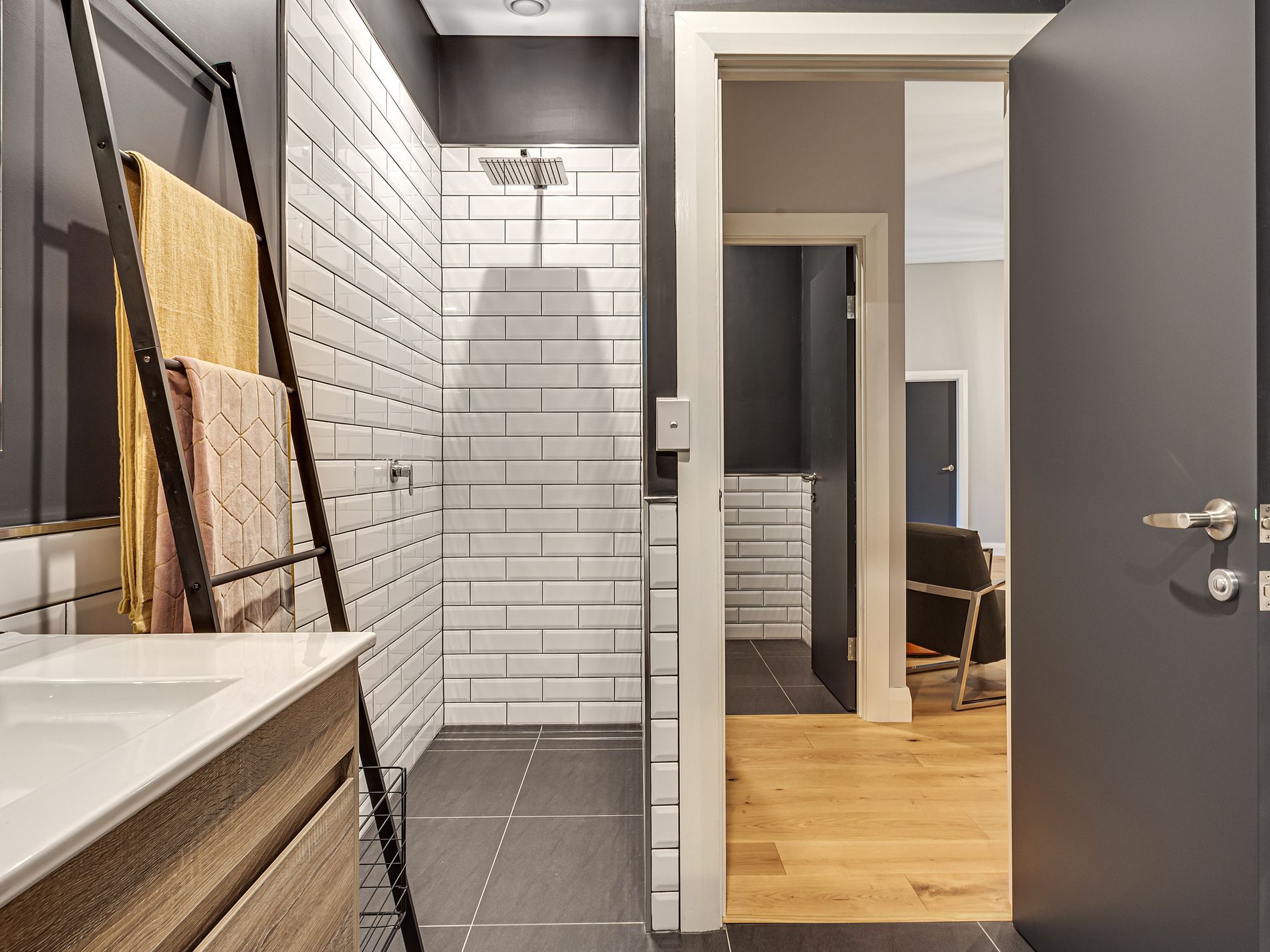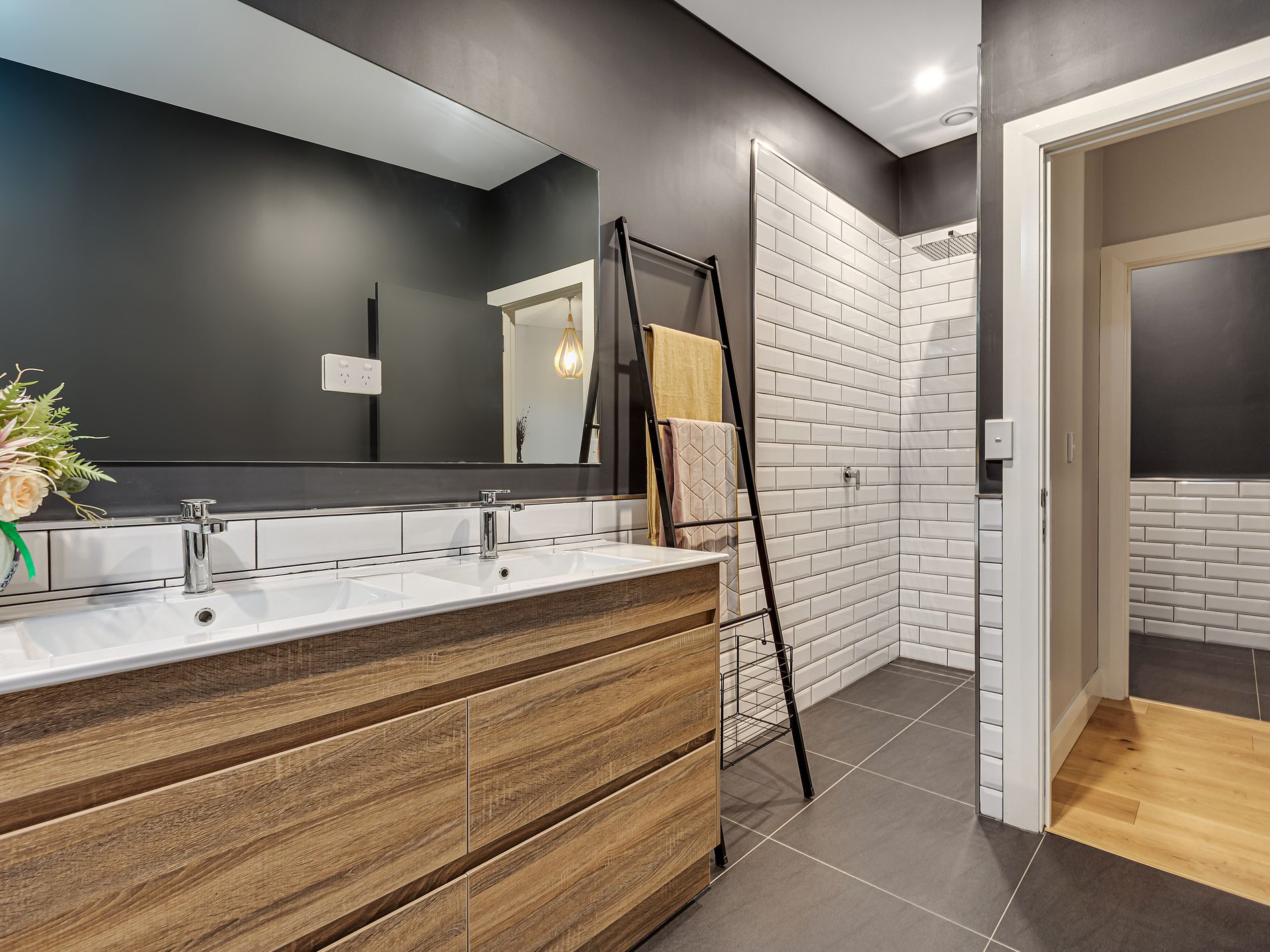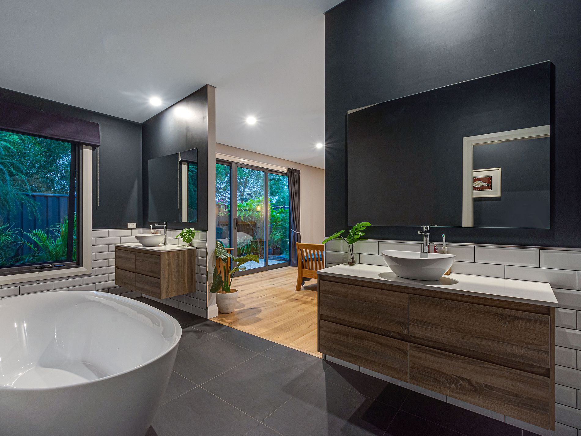 • Main bathroom is another stunner with the big free-standing bathtub, large fully tiled walk-in shower with rain-head, double vanity, and a gorgeous backdrop of green through the window however still completely private.
