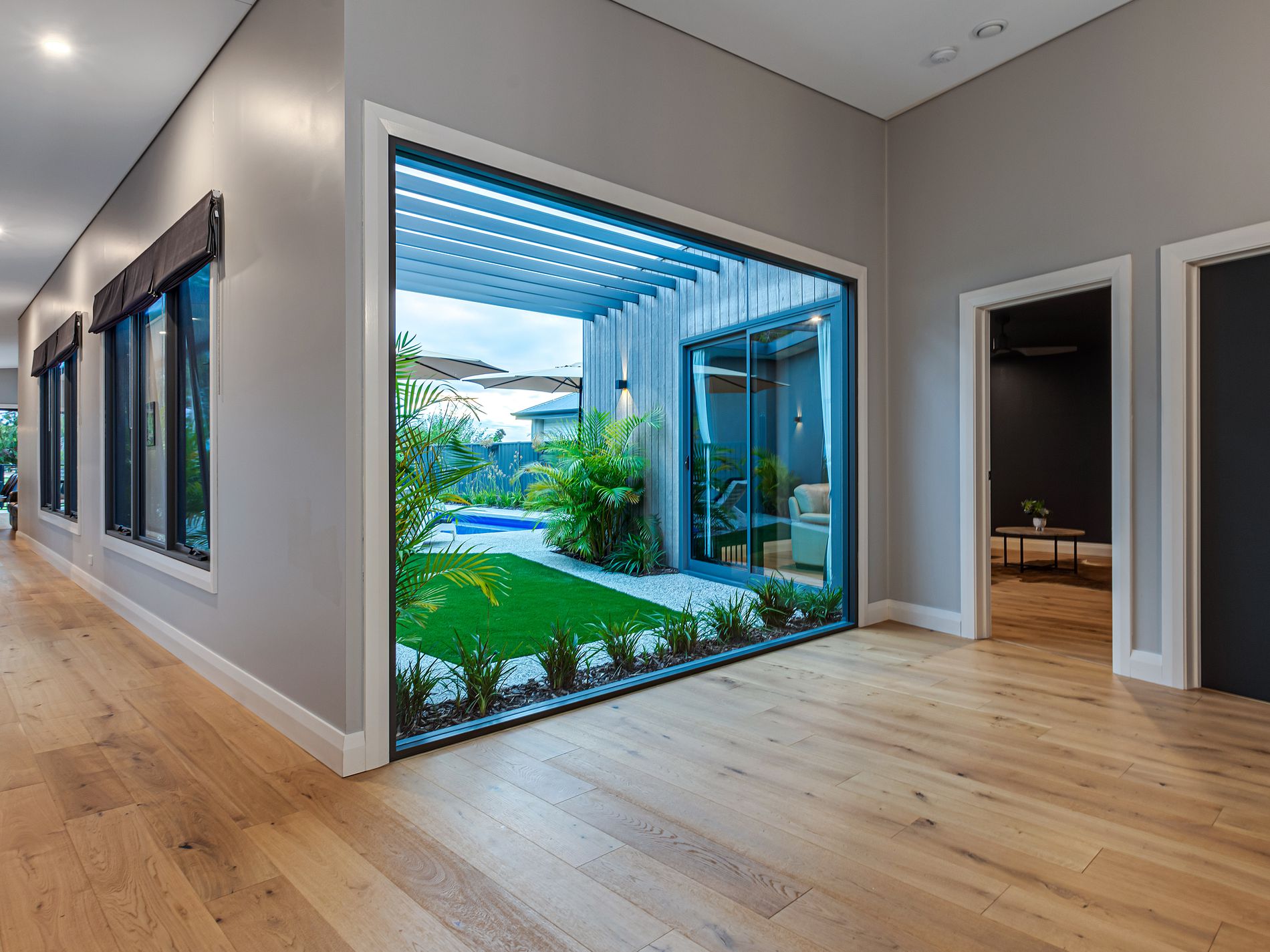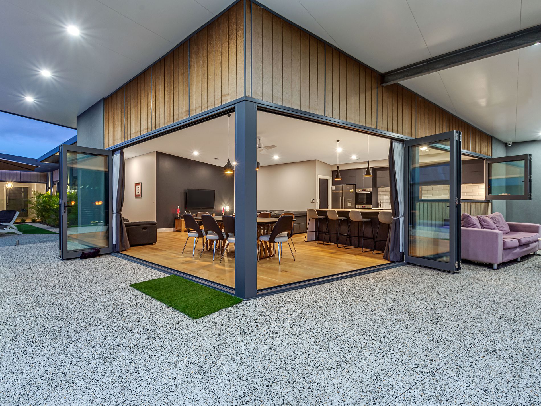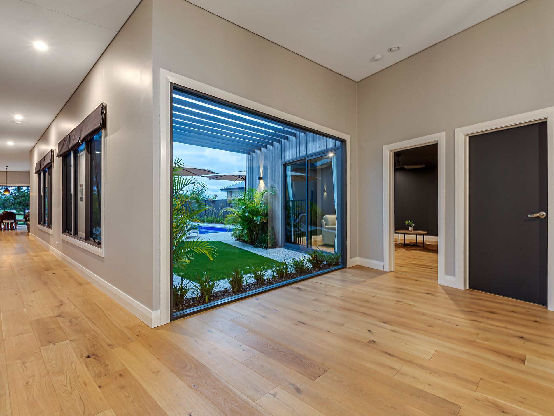 • The design and flow of this home with the wide hallway leading down to the huge open-plan kitchen, dining and living area taking in those incredible views through the bi-fold windows and massive stacking doors is ‘absolutely stunning’!