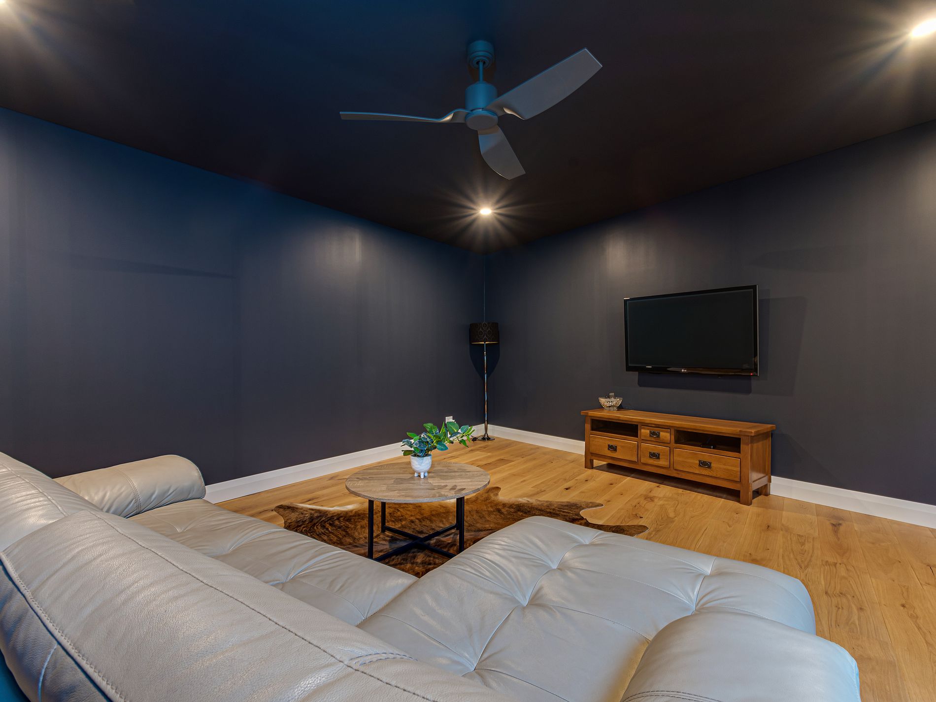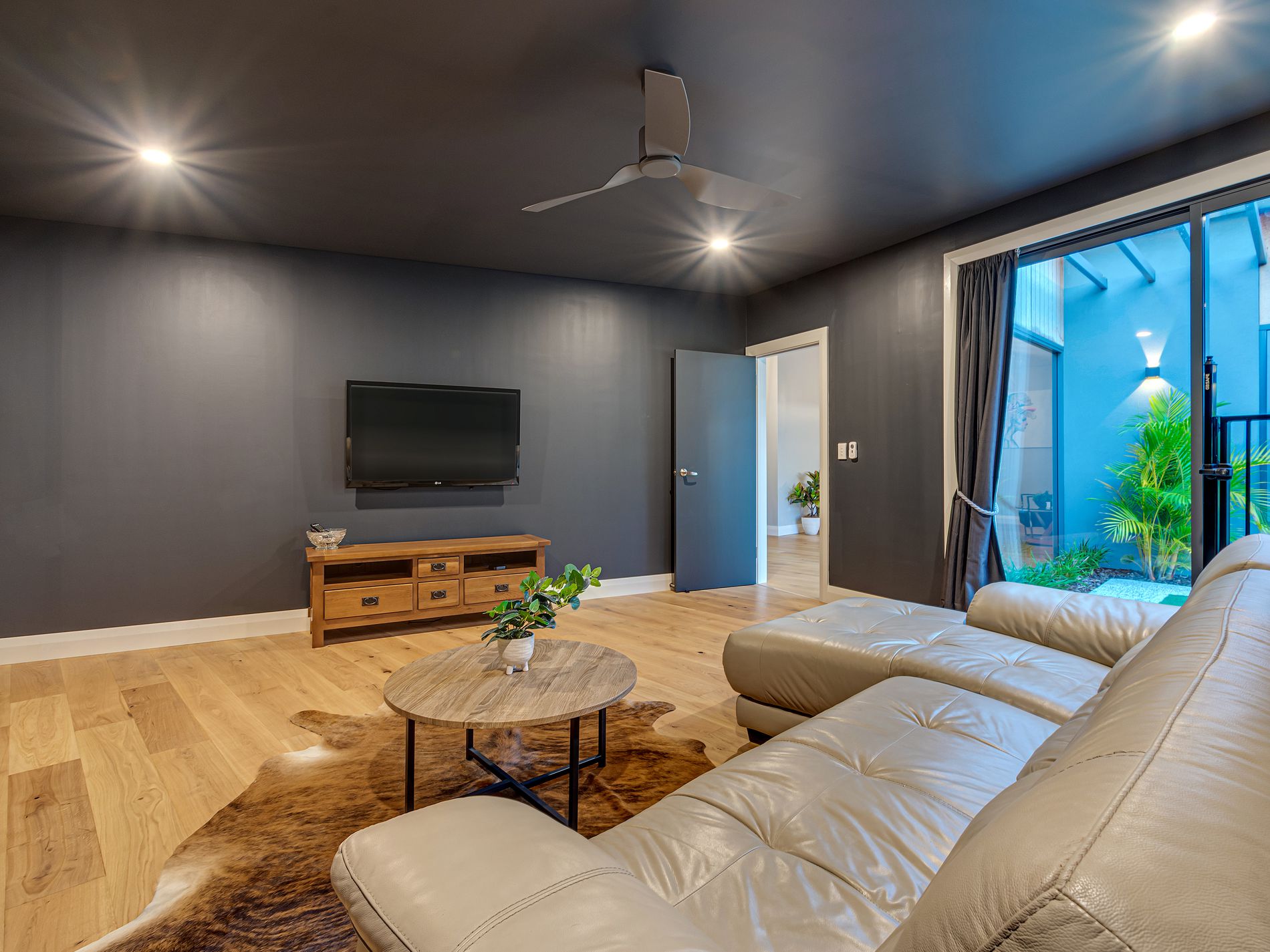 • The fully enclosed theatre room or second living is super-size and decorated to give the perfect ‘Movie Experience’ with blackout drapes and pool gate to the slider leading out to the pool area.
