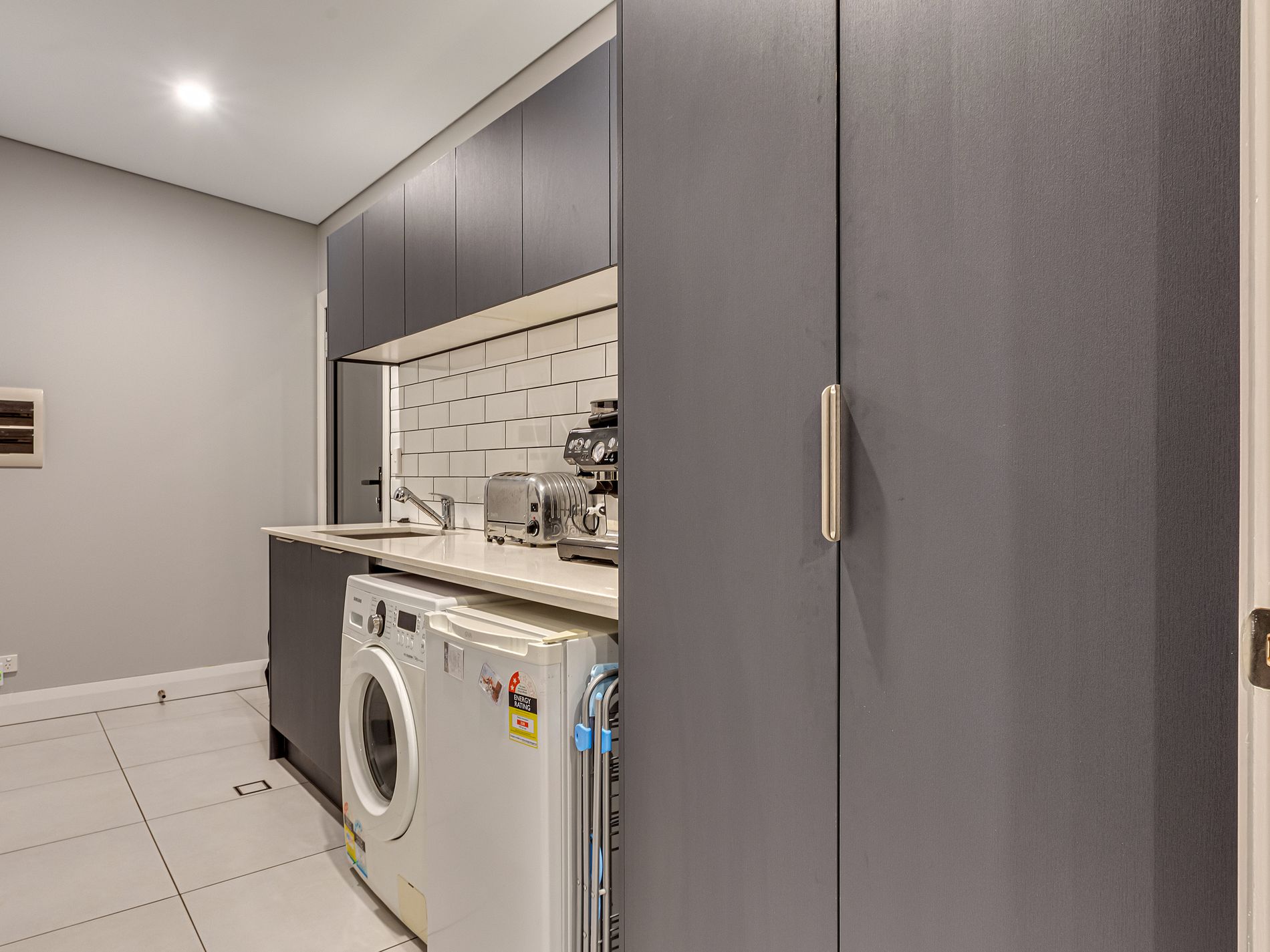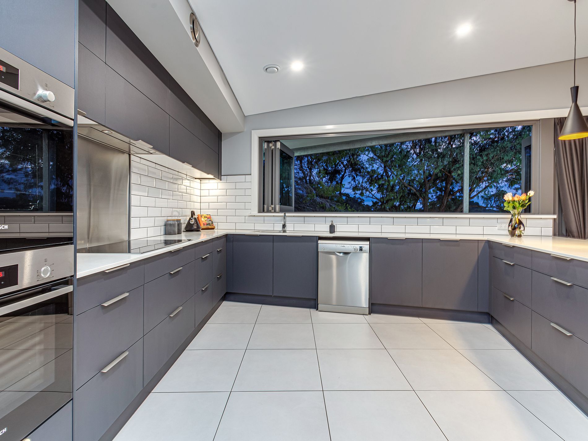 • The kitchen is sleek and functional with stone bench-tops, stainless splashback, two Bosch 60cm wall ovens, Bosch 90cm induction cook-top (fast, safe and clean), concealed rangehood, masses of cupboards and draws, dishwasher recess and double fridge recess with fabulous scullery/laundry adjacent.