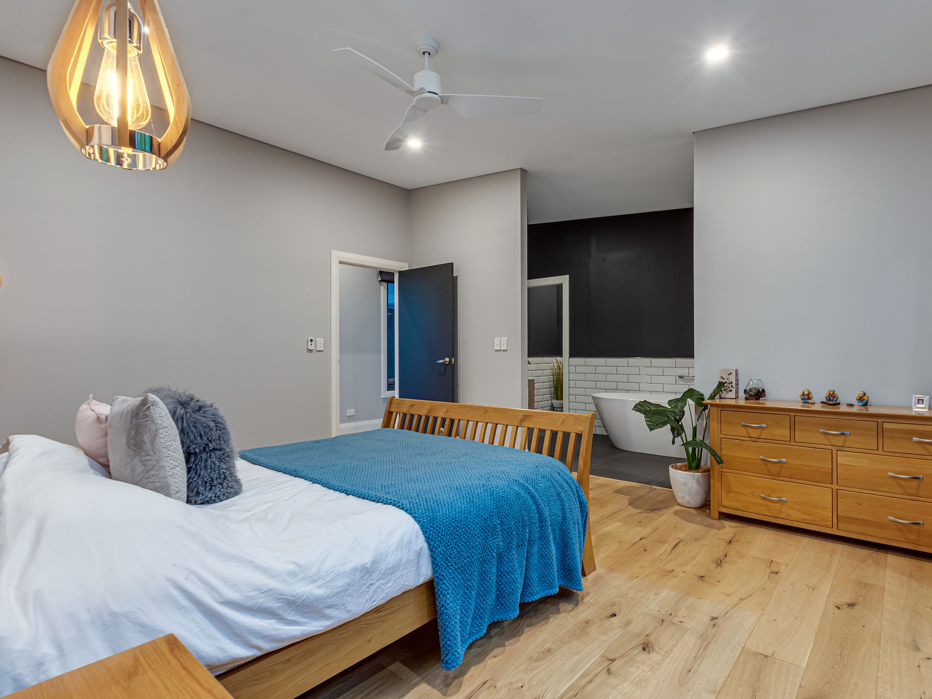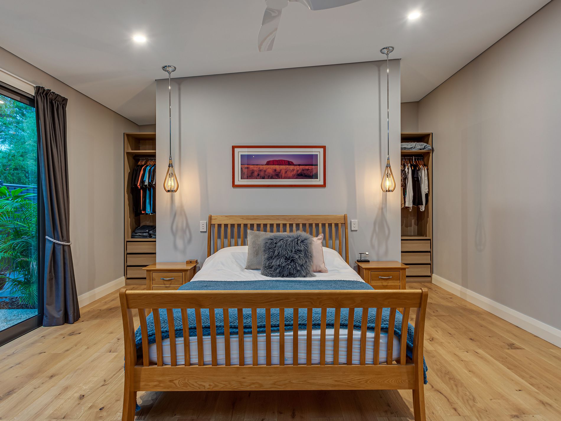 • The master bedroom is a sanctuary set midway in the home, away from the road and with sliders opening out to its’ own private, tranquil outdoor area. King-size with massive fully organised robing, simply stunning ensuite with free-standing bathtub, his and hers vanities/sinks, walk-in double size shower recess (no glass) separate WC and is all beautifully and stylishly tiled to the highest specification.