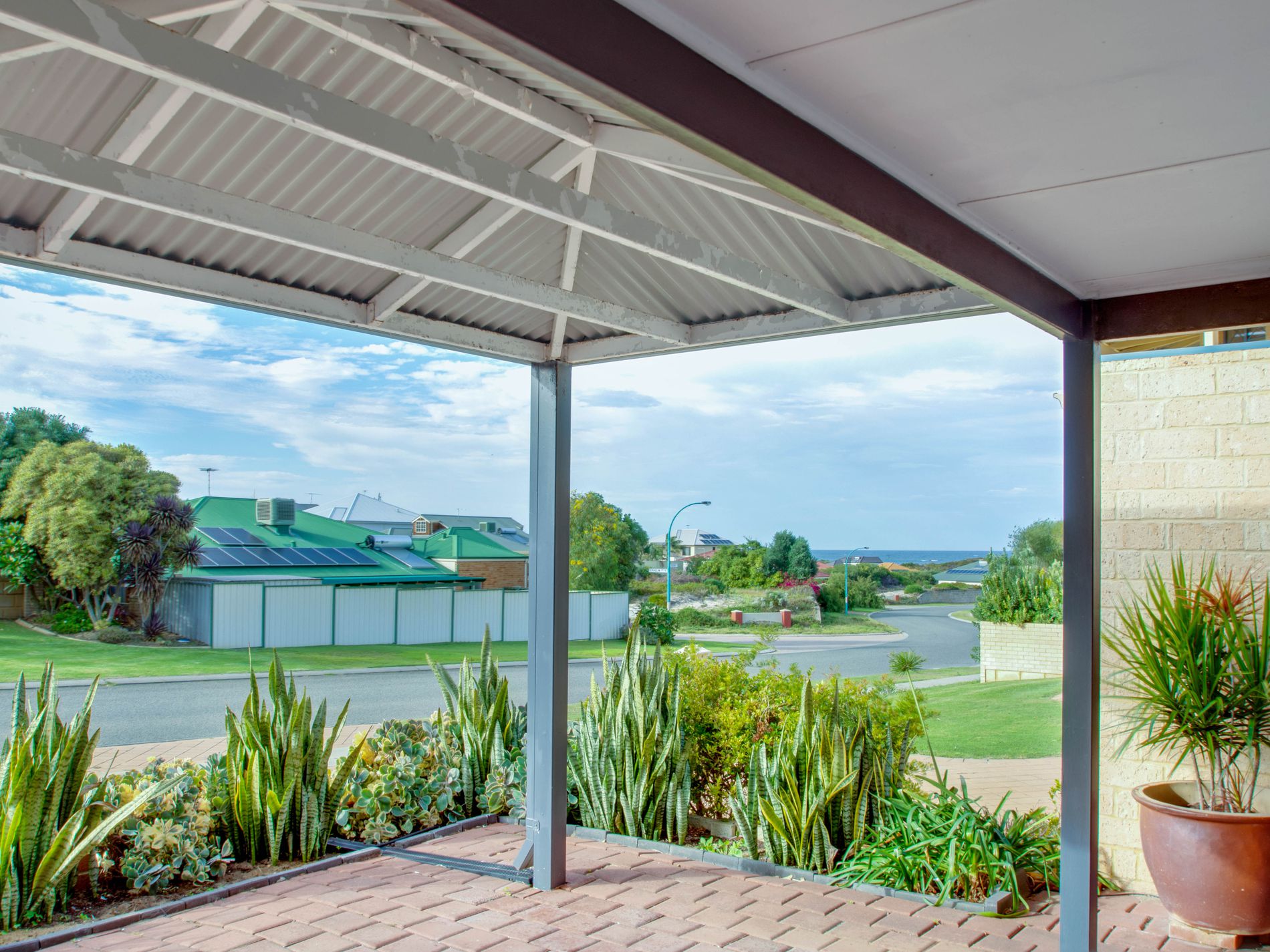 Super close to the beach with views down the road to the Ocean and from the gorgeous, elevated sitting area in the garden to the rear of the property!!