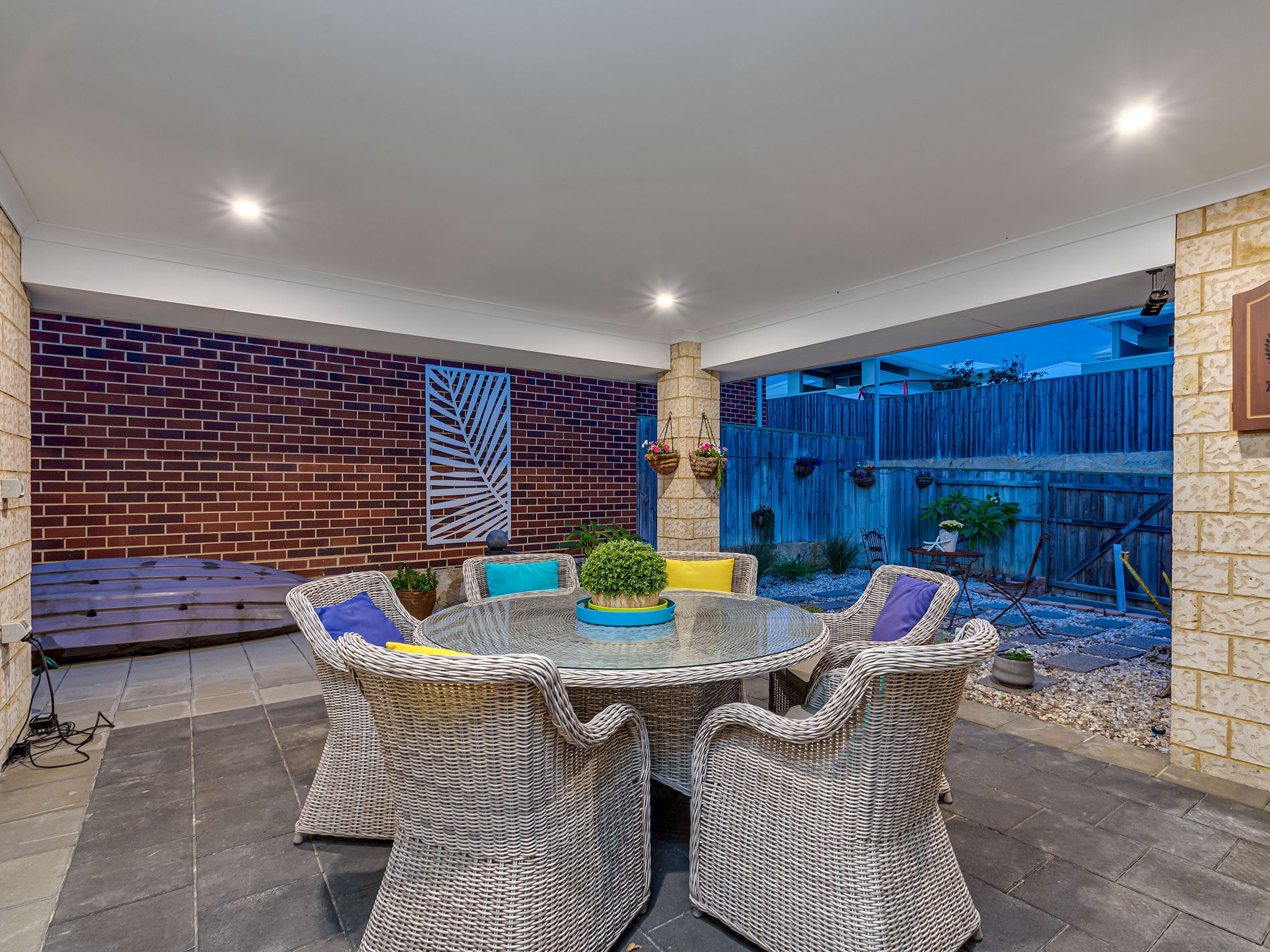 • Theatre room leads out to the lovely big under-roof patio and sheltered courtyard. This is a simply gorgeous breakfast area enjoying the morning sun or a cooler area for the afternoon or for evening BBQ’s!
