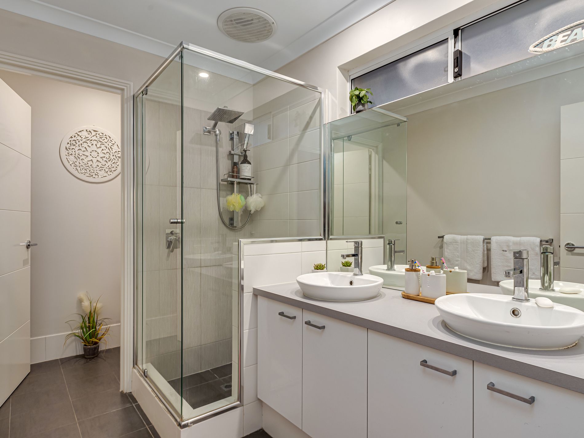 • Master bedrooms with Ocean glimpses, super-size walk-in-robe and impressive ensuite with double vanity, shower, and separate WC.