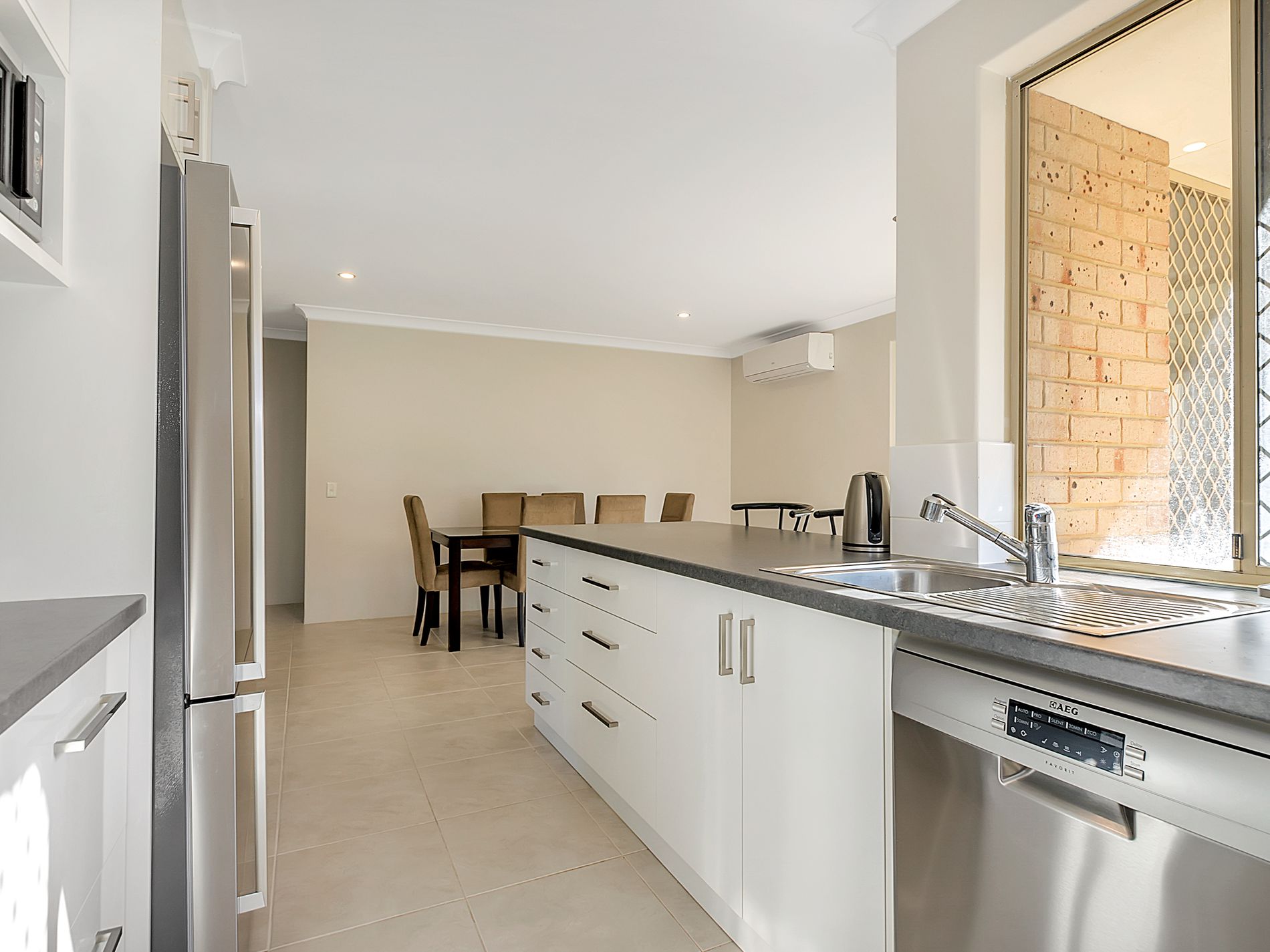 Located on a lovely quiet street this home has been beautifully maintained with neutral tones, modern tiling, renovated kitchen with stainless 60cm under-bench oven, gas cook-top, recessed rangehood, dishwasher, microwave shelf, fridge recess and plenty of cupboards and bench-space.
