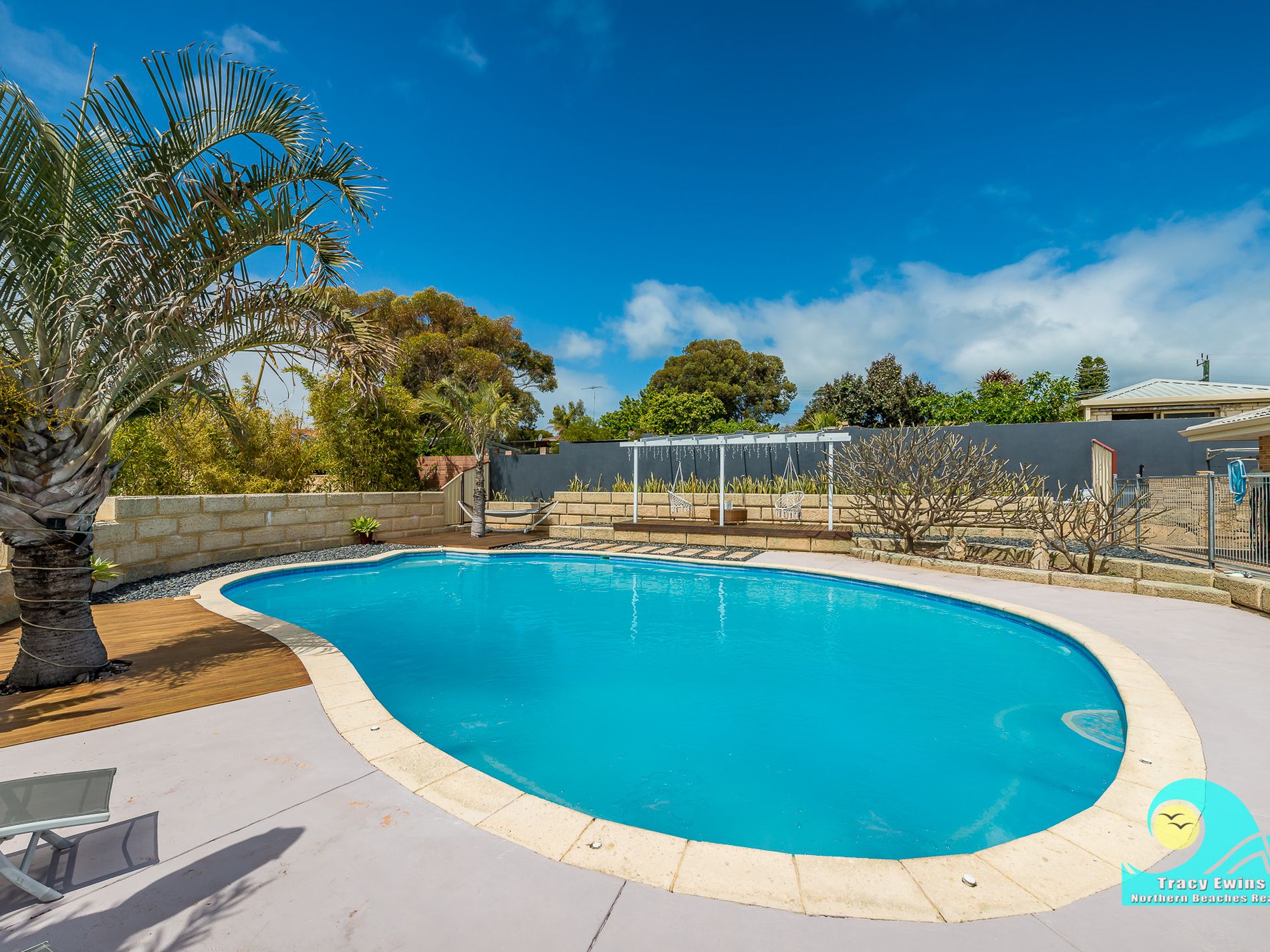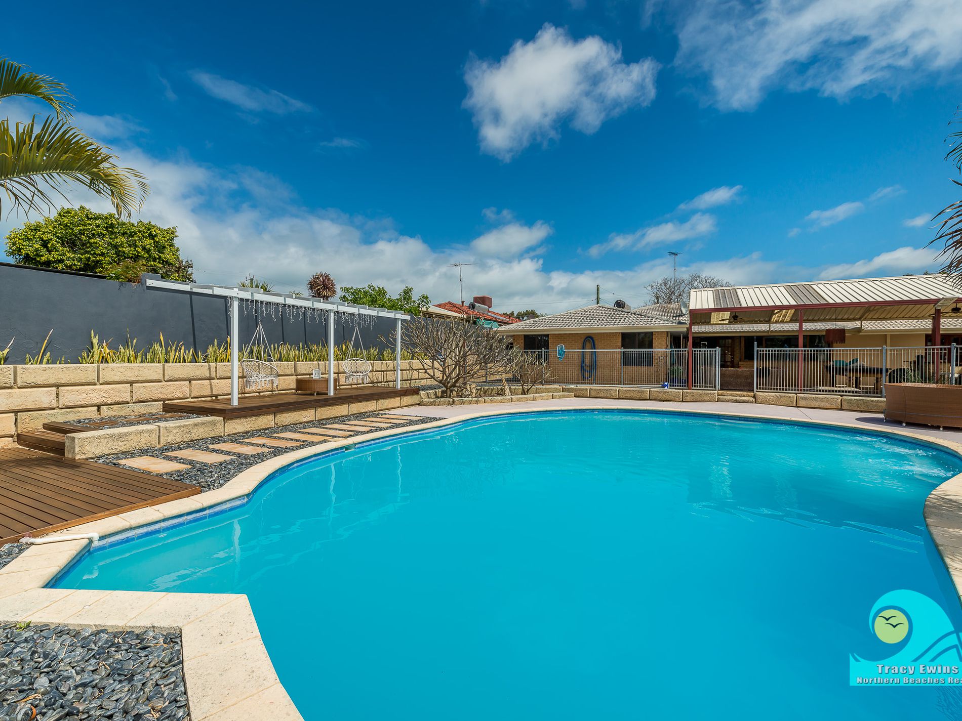 • A show-stopper resort style approximate 10 x 12 salt-water pool with masses of space for lots of fun in this fully fenced area with raised decking areas for your sun-loungers!