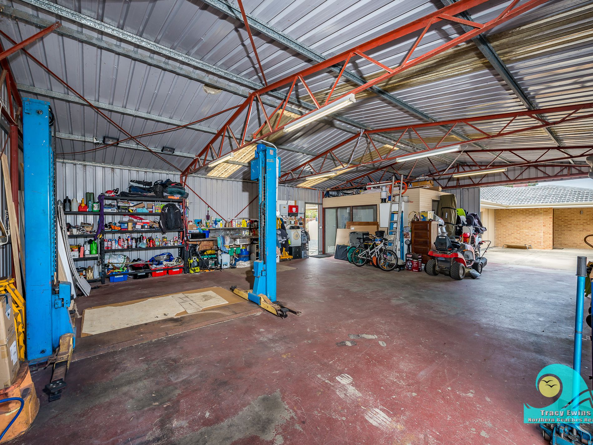 • Workshop is 108m2 with power, water, single-phase hoist, and separate office/gym room.