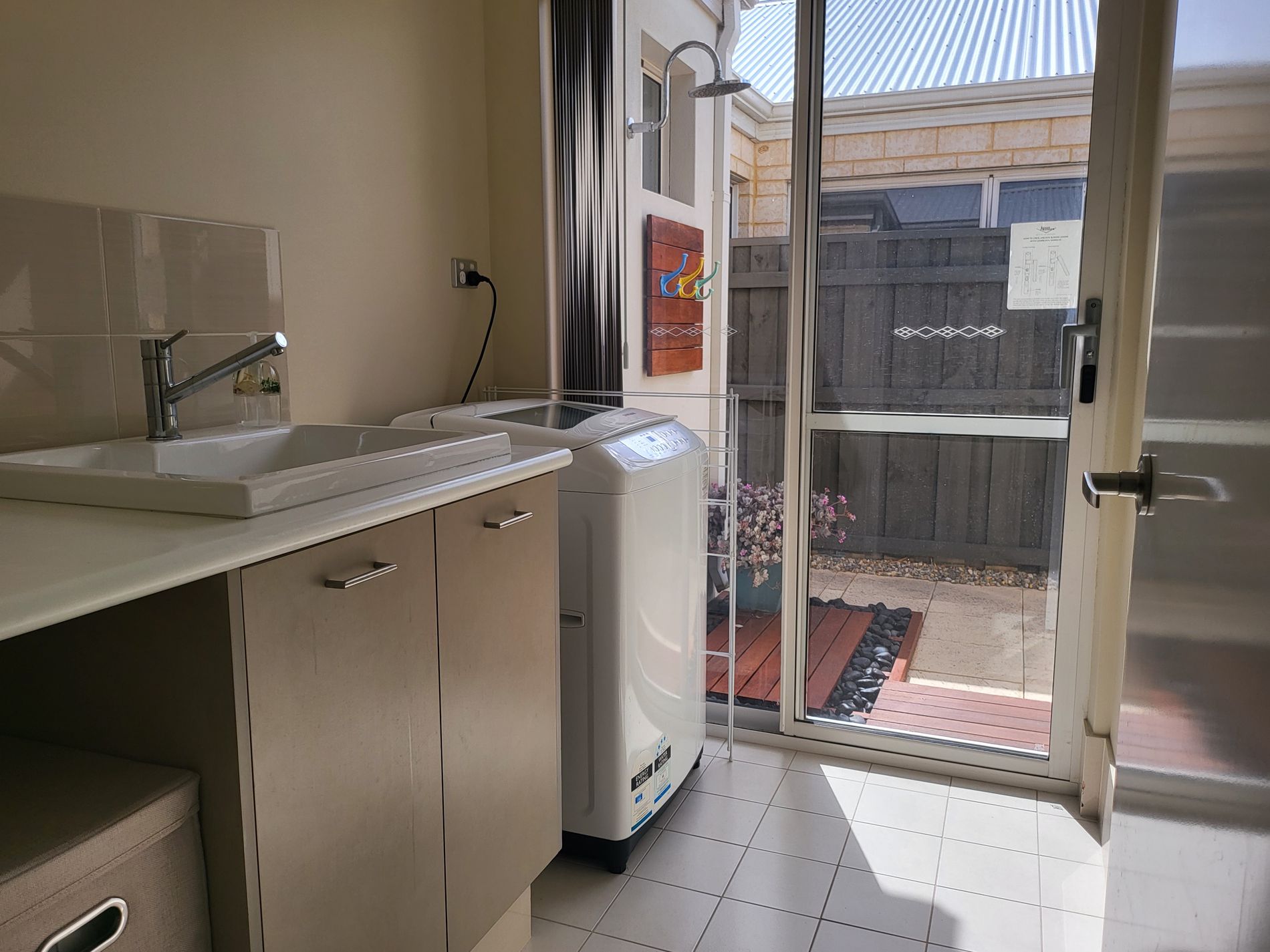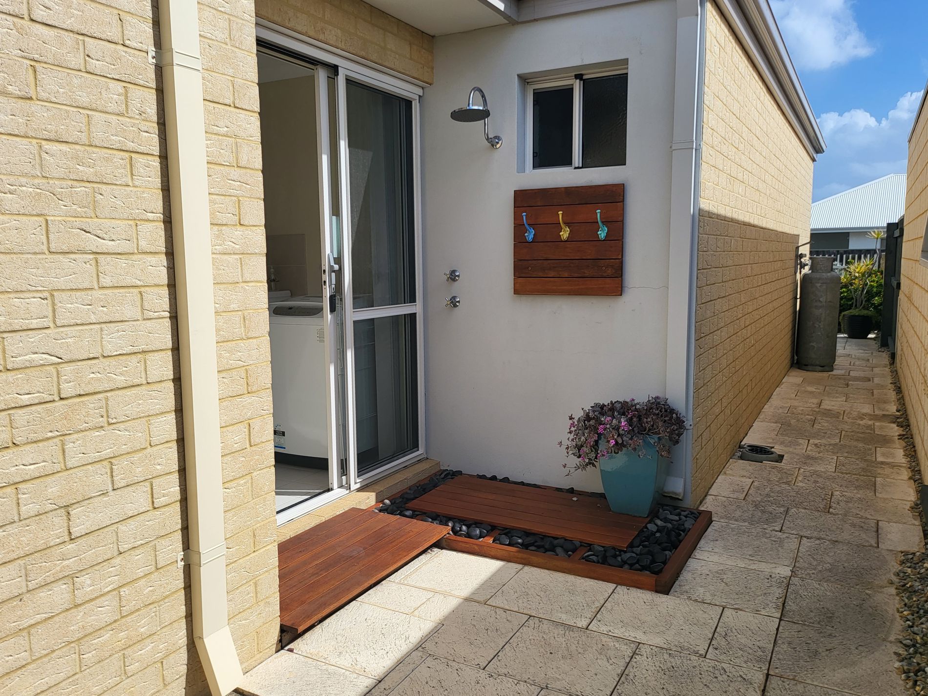 • Outside the laundry slider is the beautifully appointed ‘outdoor shower’ located perfectly for you to come up the side of the house as you come back from the beach, designed to prevent getting sand in your bathroom and ensuite showers!