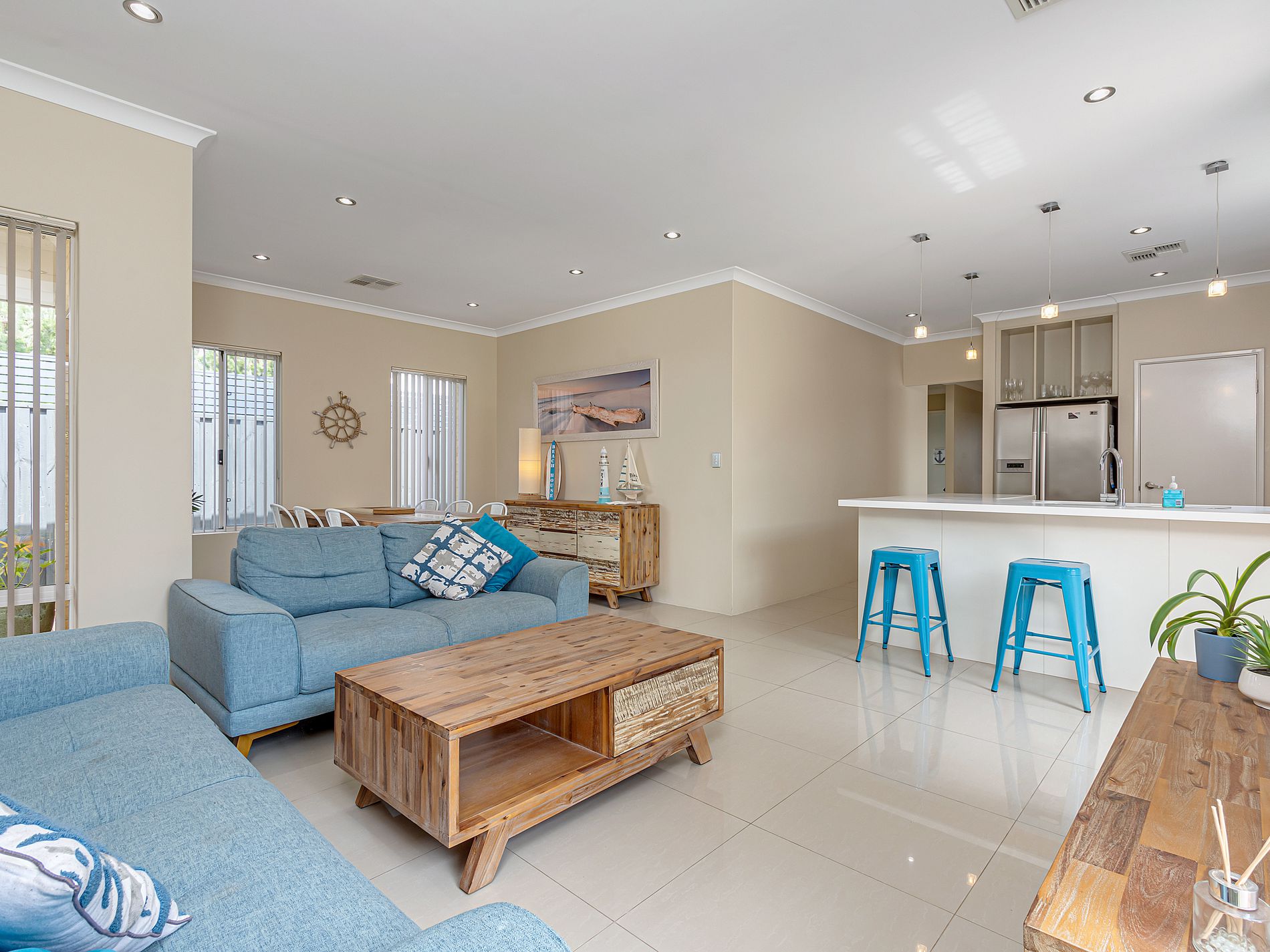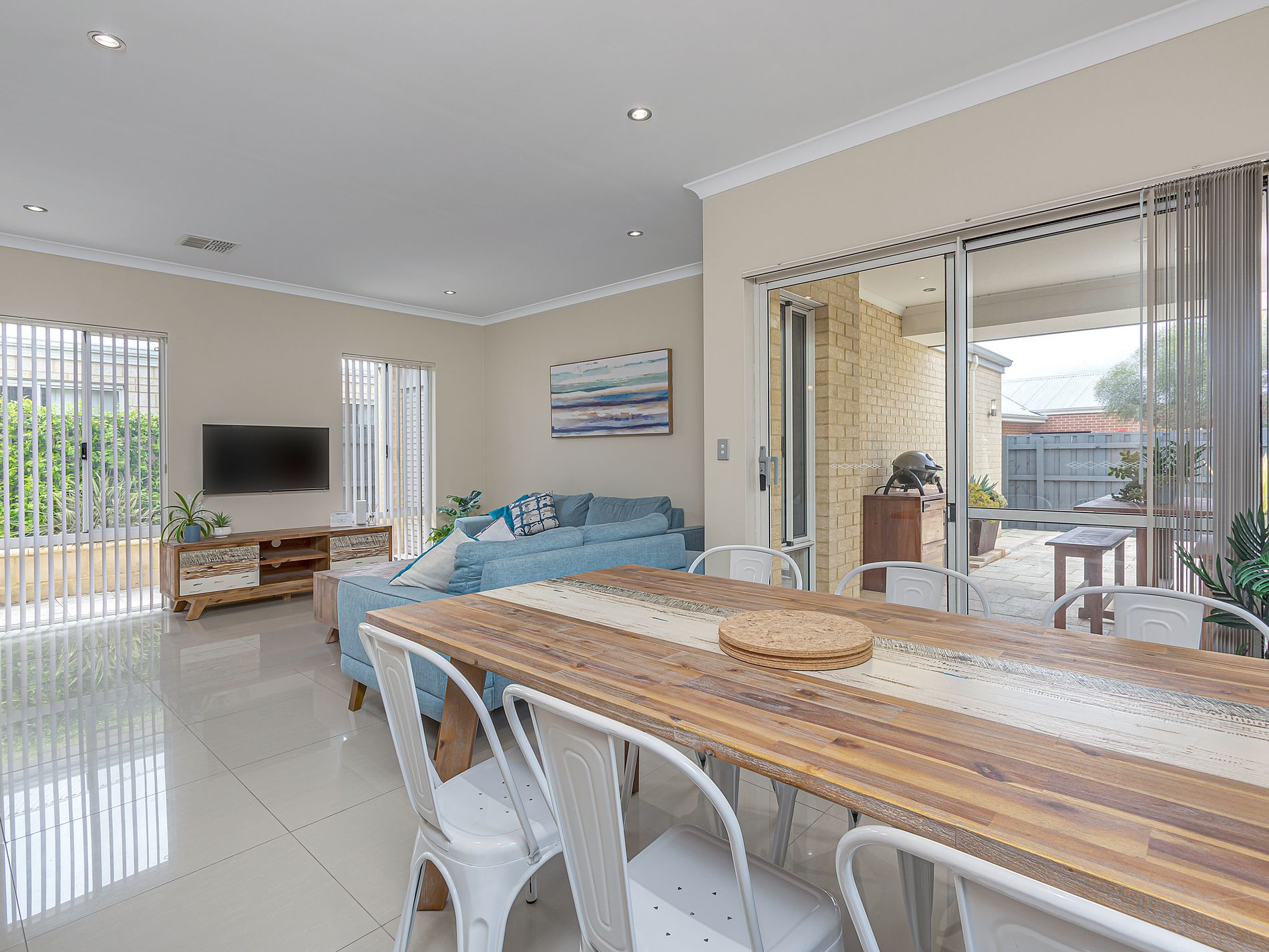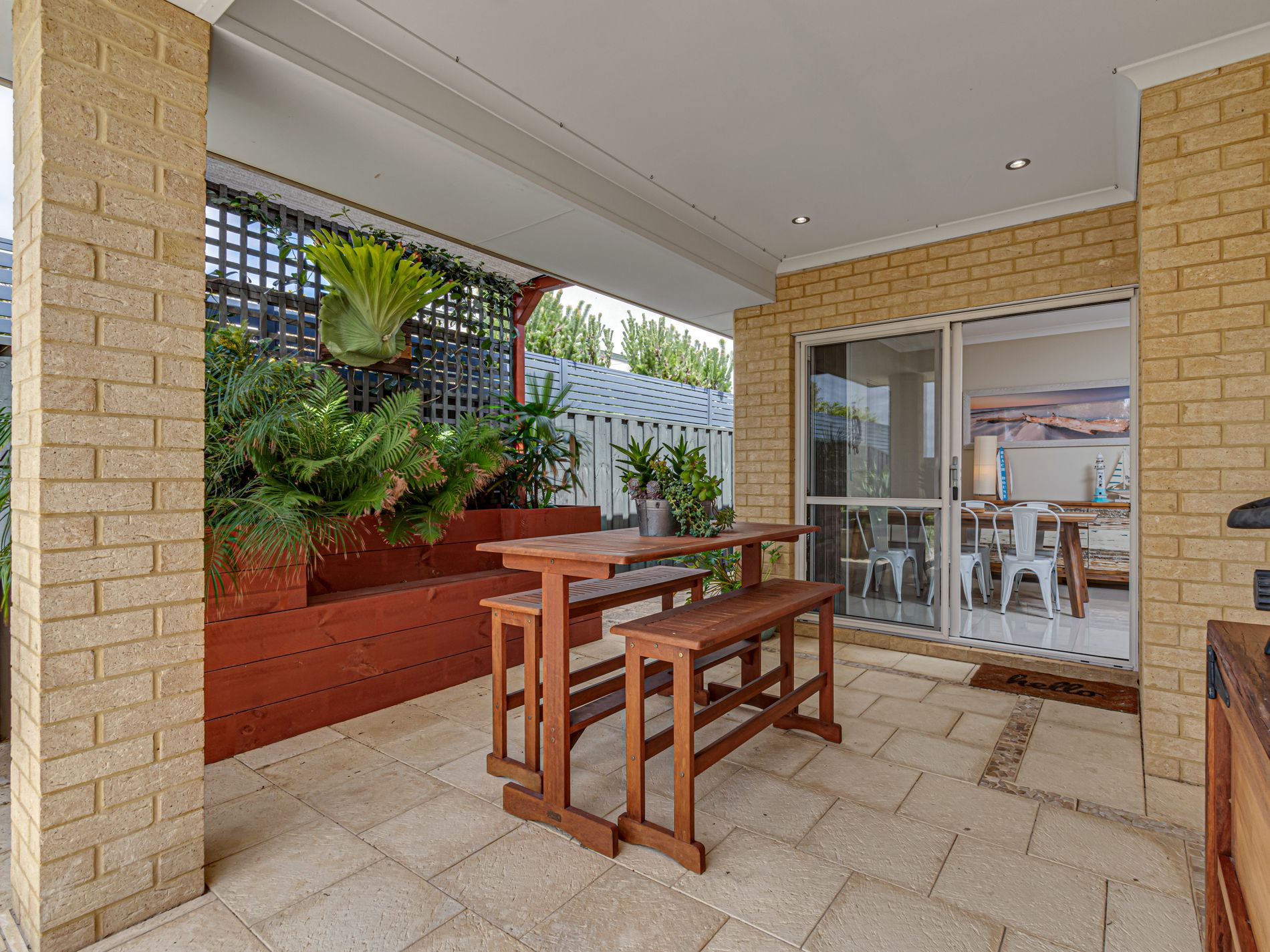 • Lovely cosy but roomy living/dining area leads out to a skilfully designed alfresco with purpose-built seating and beautifully landscaped easy-care gardens.