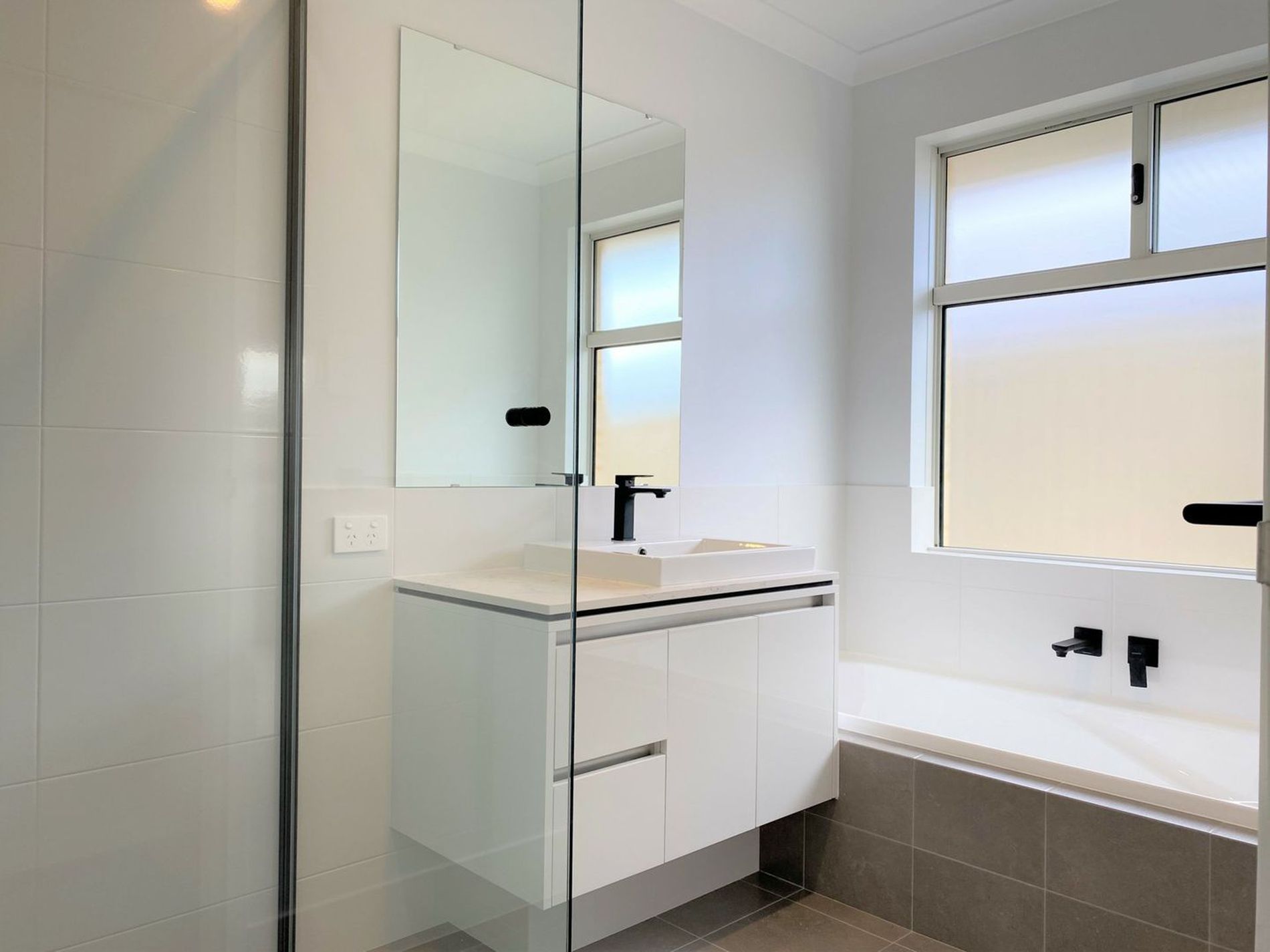 * Master is lovely and light with windows to the floor and a gorgeous ensuite with double basins, stone top vanity and big shower.