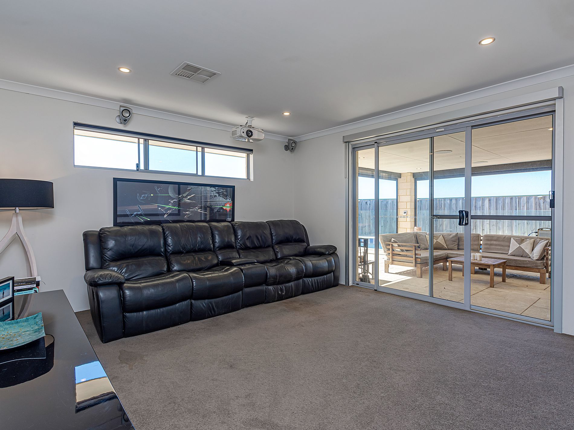 • Large media/theatre room opens off the main living area, also leading to the outdoor entertainment area (projector/screen/speakers NOT INCLUDED however can be negotiated separately)– this home really is designed as the perfect entertainer!!